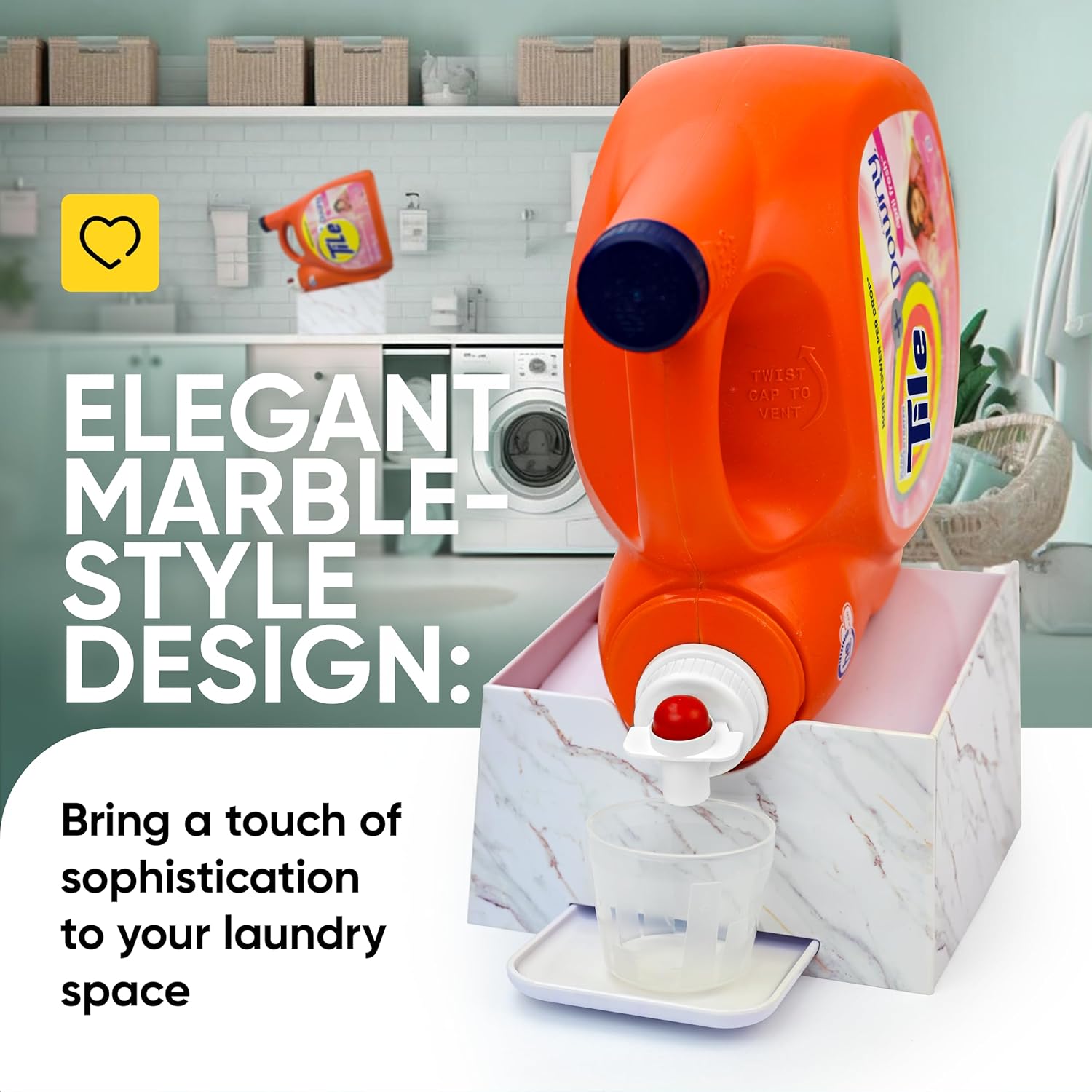 Skywin Laundry Room Organizer and Drip Tray - Soap Cup Storage for Liquid Detergent Containers (White Marble)