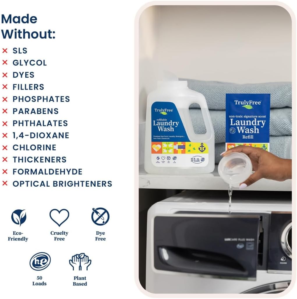 - FAMILY-FRIENDLY: Truly Free Laundry Wash Detergent is safe for the entire family, not just for babies. Its gentle and natural formula makes it suitable for everyone, including those with sensitive skin, making laundry day simpler by using one detergent for all.