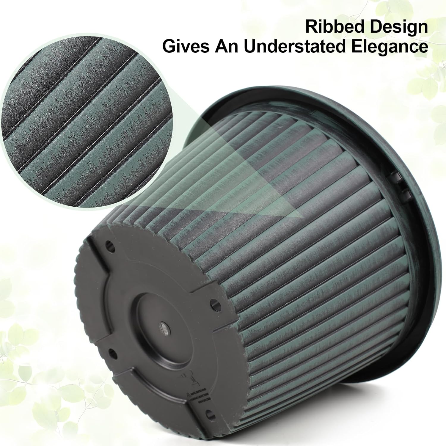 - 【MODERN STYLE PLANTERS】 Indoor planters with saucers provide a unique,nice style in ribbed design which gives an understated elegance that will enhance the beauty of your plant. These 14 inch plant pots are available in red-brown &blue-green & gold finished with a black antique stain. Plastic flower pots would be a beautiful addition to anyone’s deck or sunroom or house!