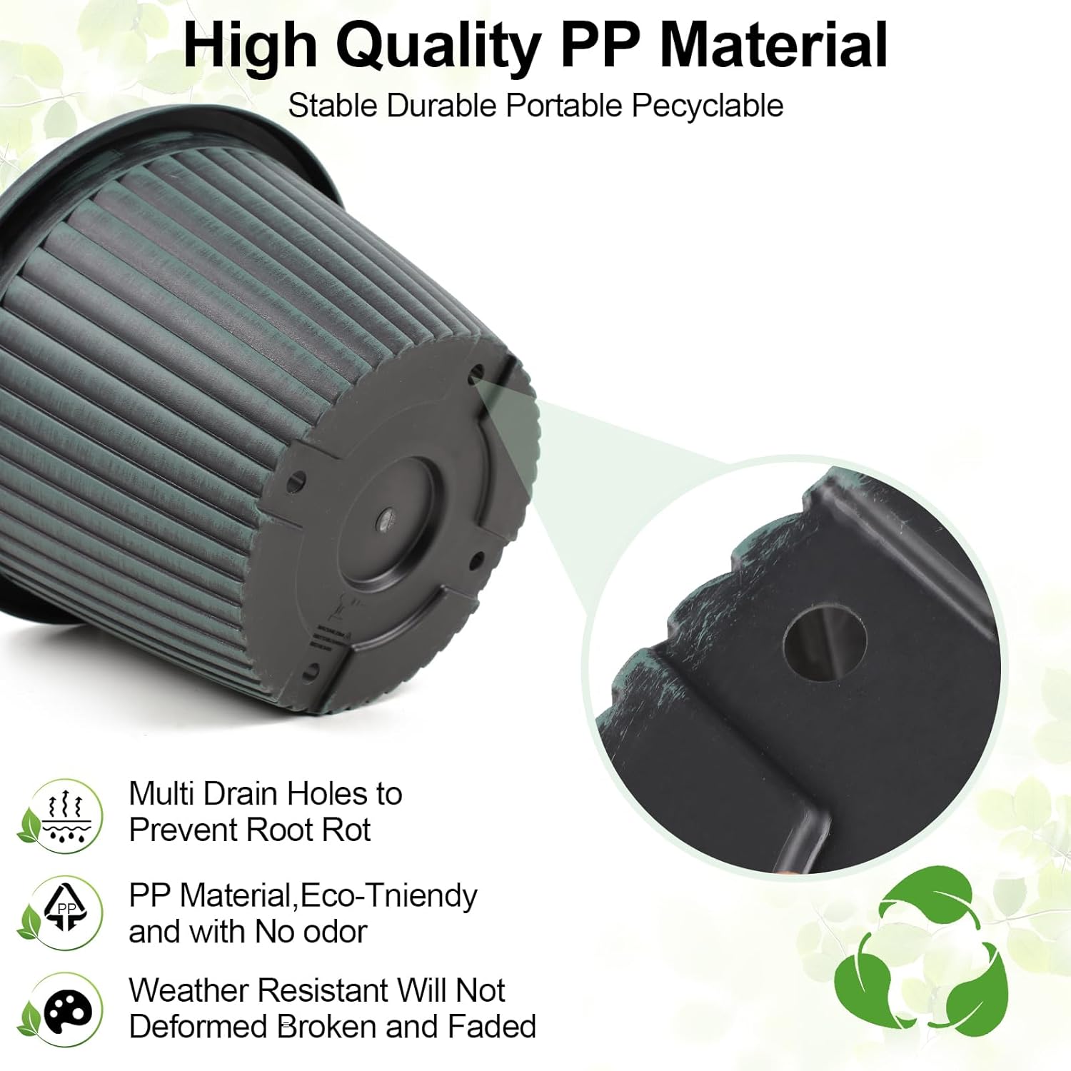 - 【Perfect Size & sturdy Material】Top diameter: 14 inch, bottom diameter: 9.6 inch, height: 9.8 inch, capacity: 5 gallon. Plastic plant pots are made of recyclable polypropylene resin which is lightweight but sturdy, not easy crack. These indoor outdoor planters are UV and weather resistant. 14 inch flower pot is perfect for planting medium to large sized plants.
