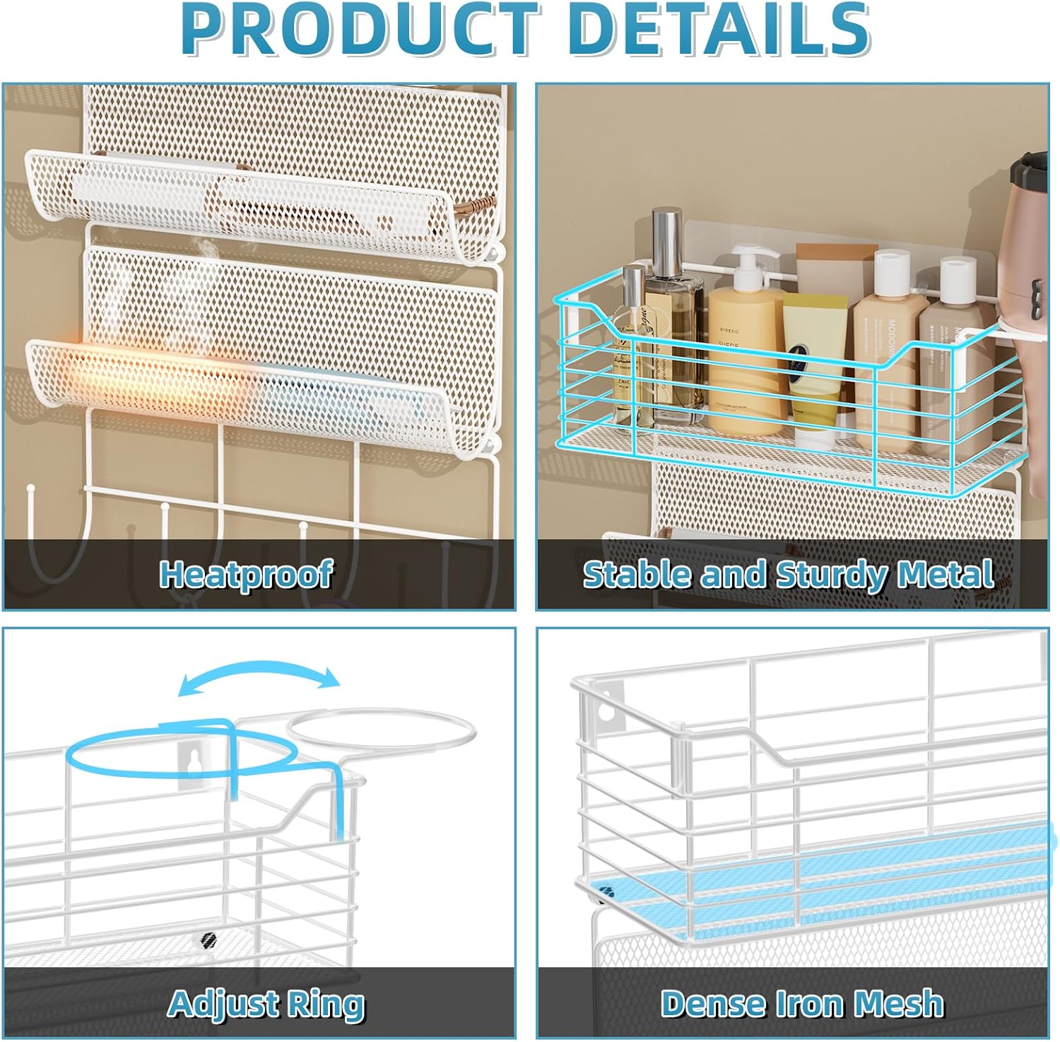 • 【High-Temper Resistant】The whole of the hair tool shelf is made of high-quality metal, which is sturdy durable, and high-temperature resistant, put hot hair tools on it safely.