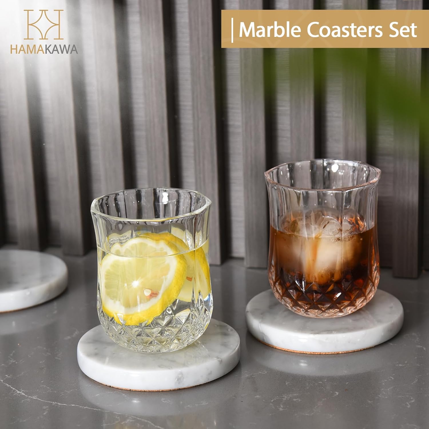 - Non-slip and Easy to Clean: Each marble coaster comes with a cork bottom, that prevents tabletop abrasions and scratches and also keeps the coaster securely on the table. It can be washed under water or wiped down with a damp cloth