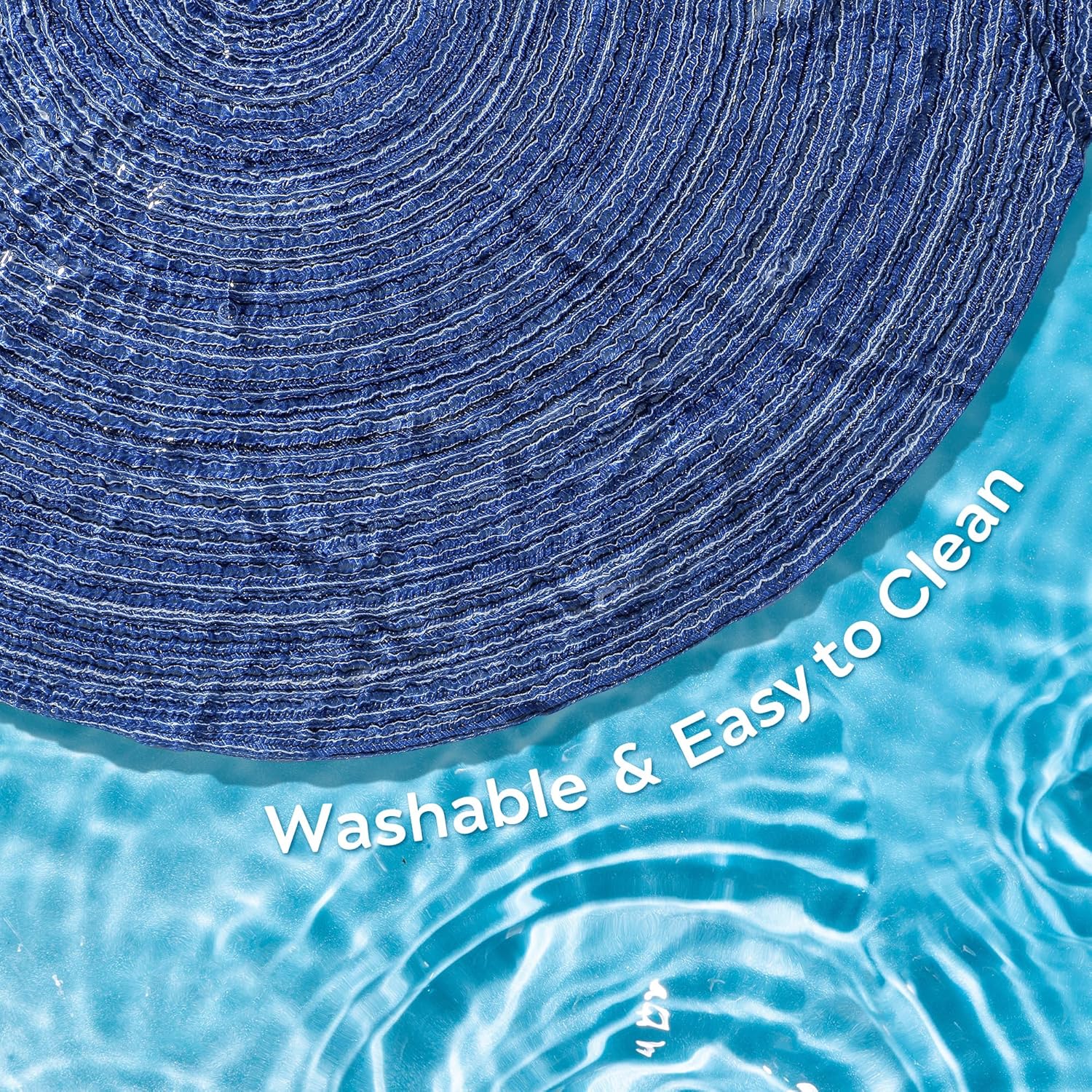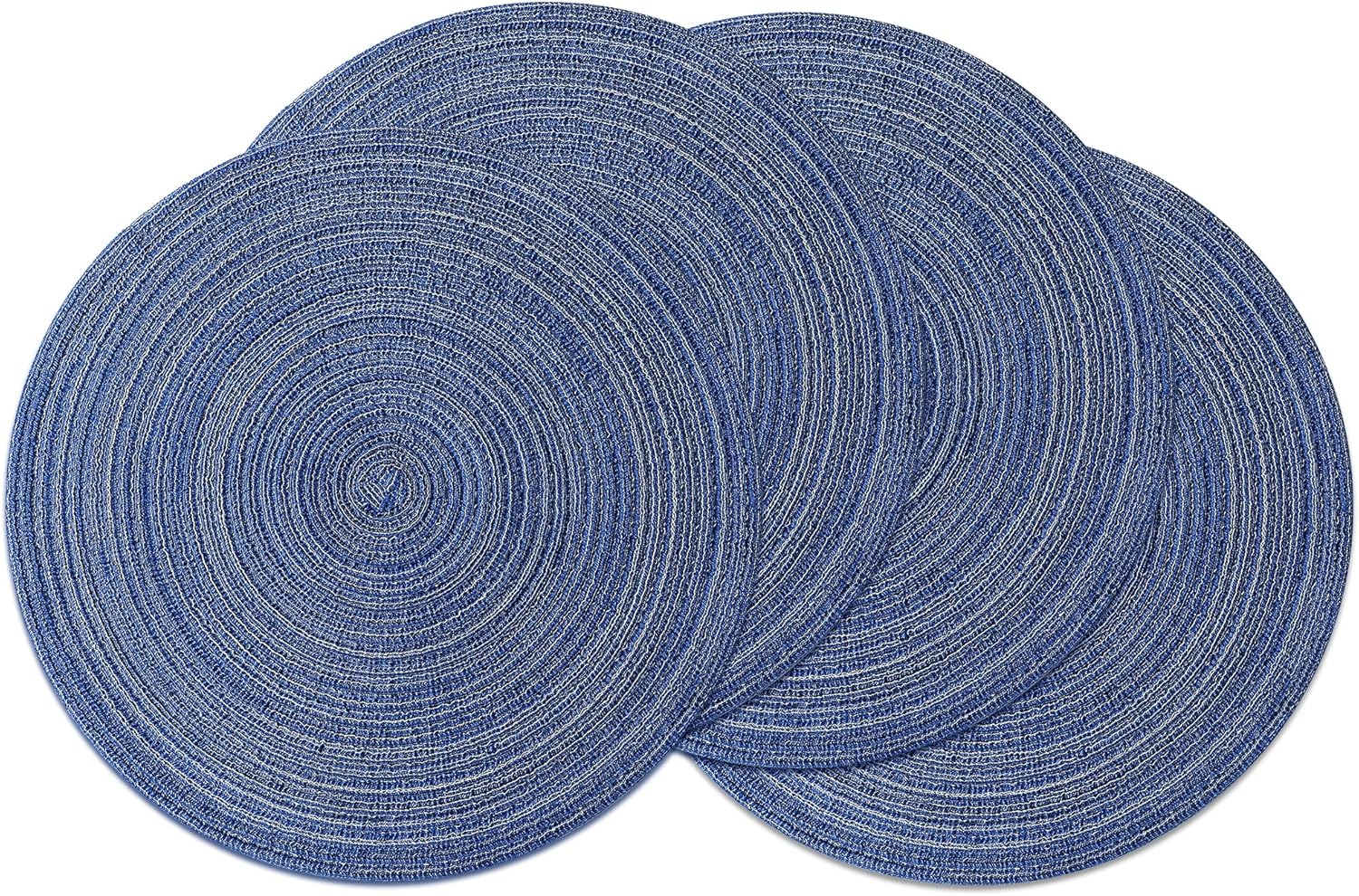 Leetaltree Round Placemats Heat and Slip Resistant Cotton Table Mats, Washable Bohemian Placemats for Dining Tables (Denim Blue, Set of 4)