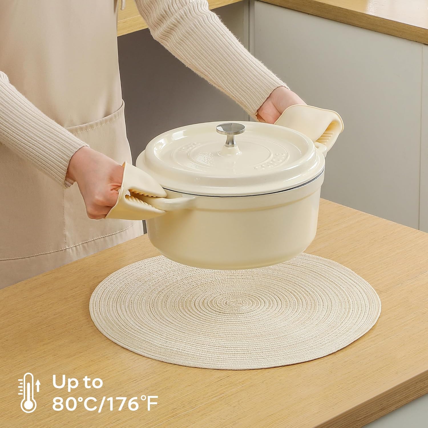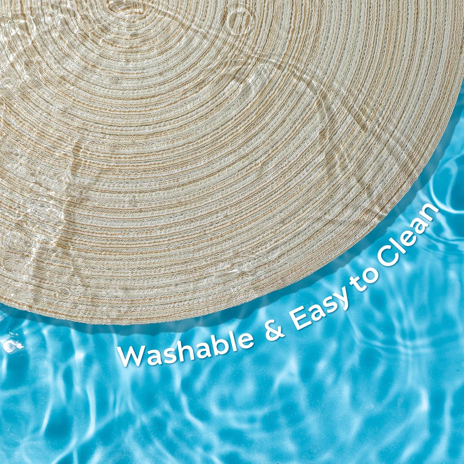 • Protect Your Dining Table: Our placemats can withstand temperatures up to 176°F (80°C), protecting your table from stains, hot food, or scratches from tableware. With a diameter of 15 inches, they perfectly fit a variety of tableware