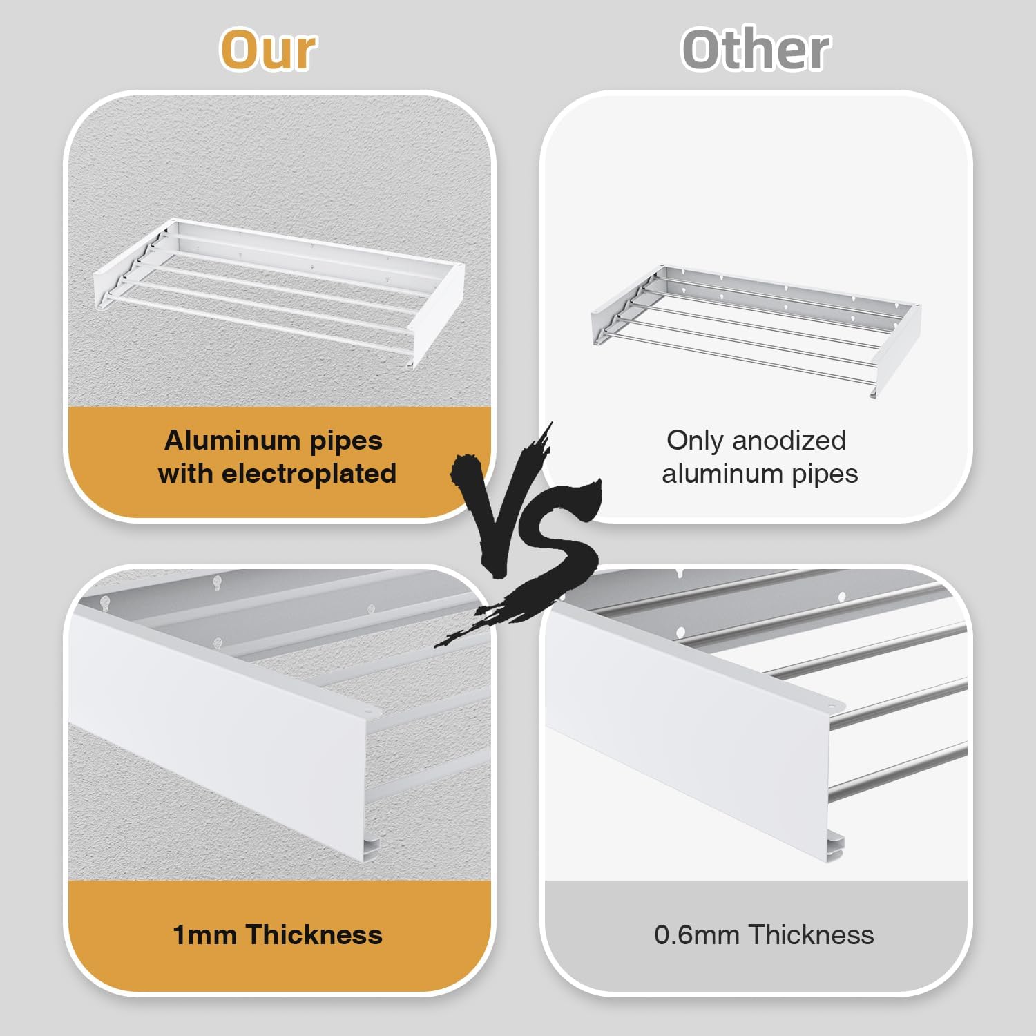 - Heavy Weight Capacity: Solid structure, main frame 1.4mm thick, strong bearing capacity and stability, rust-proof and wear-resistant. Foldable wall mounted clothes drying rack: 4 heavy aluminum rods, equivalent to 11.2 feet of linear suspension line, can withstand 60 pounds of weight. Use this expandable clothes hanger in your laundry and bathroom to create a flexible and convenient clothes hanging system.