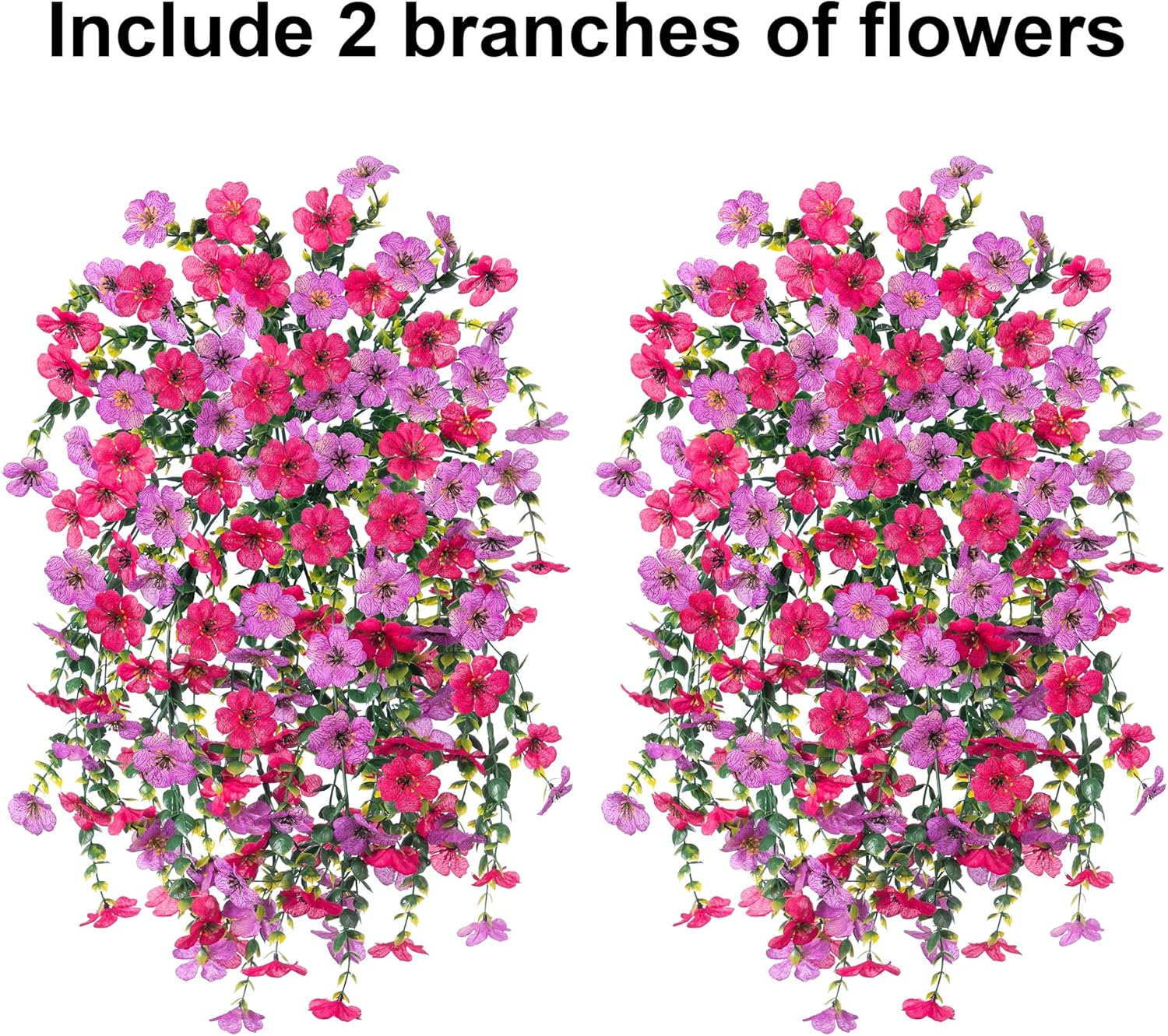 - Durable and UV Weather-Resistant: The fake hanging plants flowers are made of high quality silk cloth and plastic, UV and all weather resistant, waterproof and no fade in the sun and rainstorm.