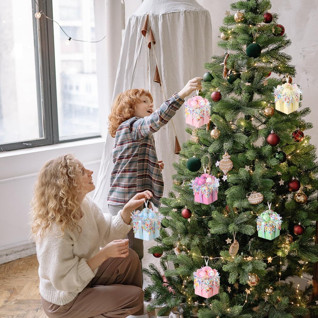 Christmas Tree Gift Box Ornament Set,3 Pieces Macaron Color Candy Gift Hanging Ornaments for Christmas, New Year, Easter, Birthday (Pink Purple Blue)