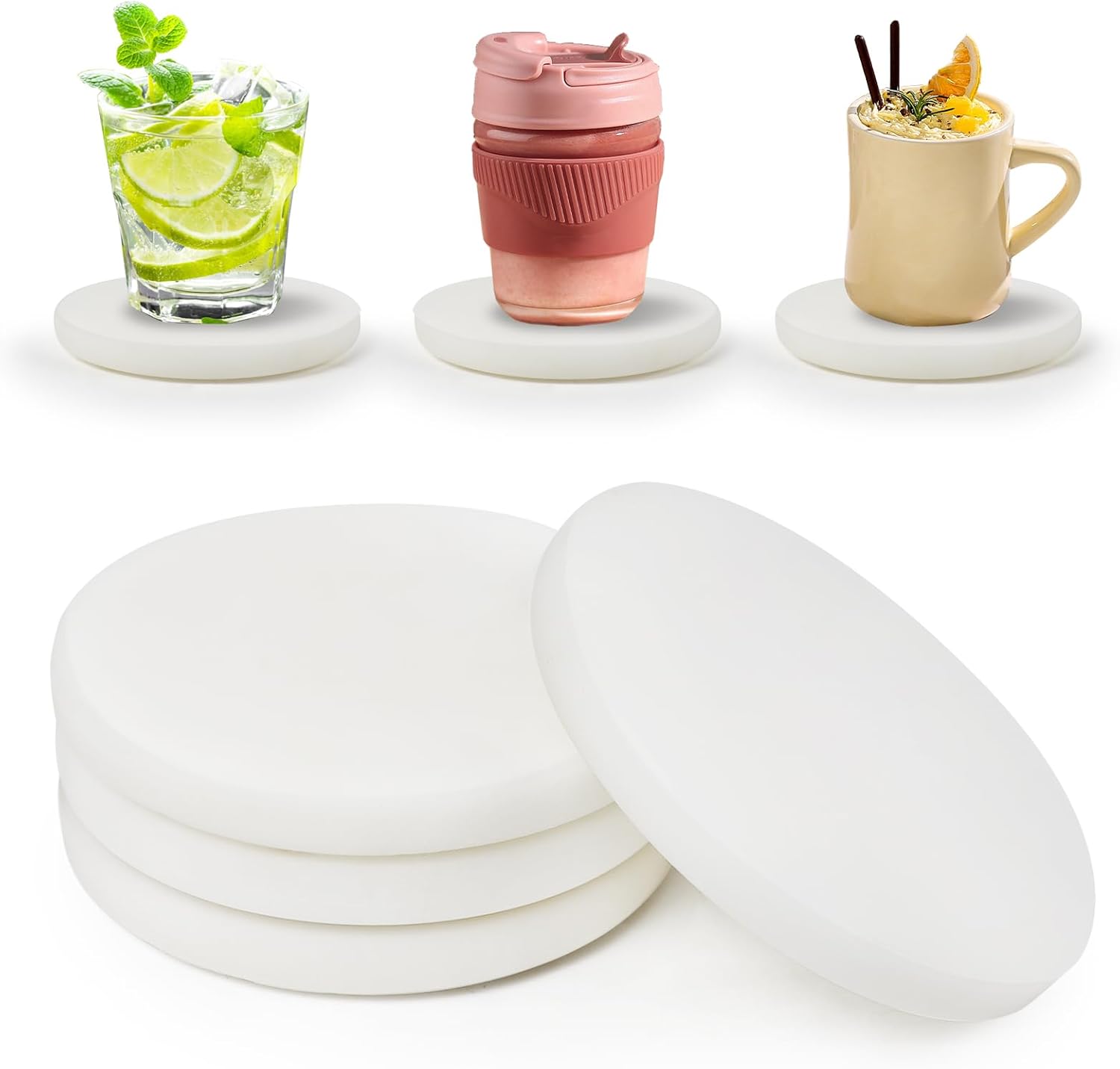 Pure White Marble Coasters Without Particles, Set of 4 - Natural Marble Stone Drink Coaster with Protective Silicone Feet, 4 inch Diameter, 0.4 inch Thick - Heat-Resistant Coasters for Coffee Table