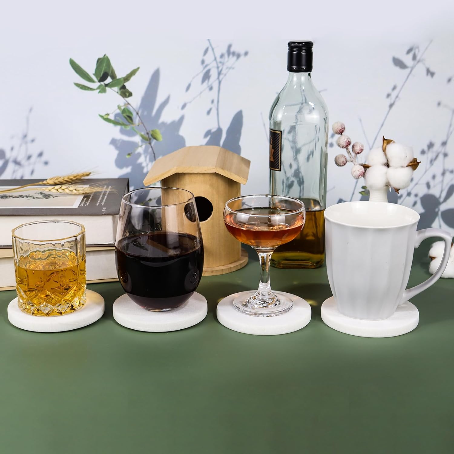- [ Package Includes ]: 4 pure white marble coasters in round shape. The diameter of each is 4 inches, the thickness is 0.4 inches. The weight of each is about 0.5 lb / 220 g.