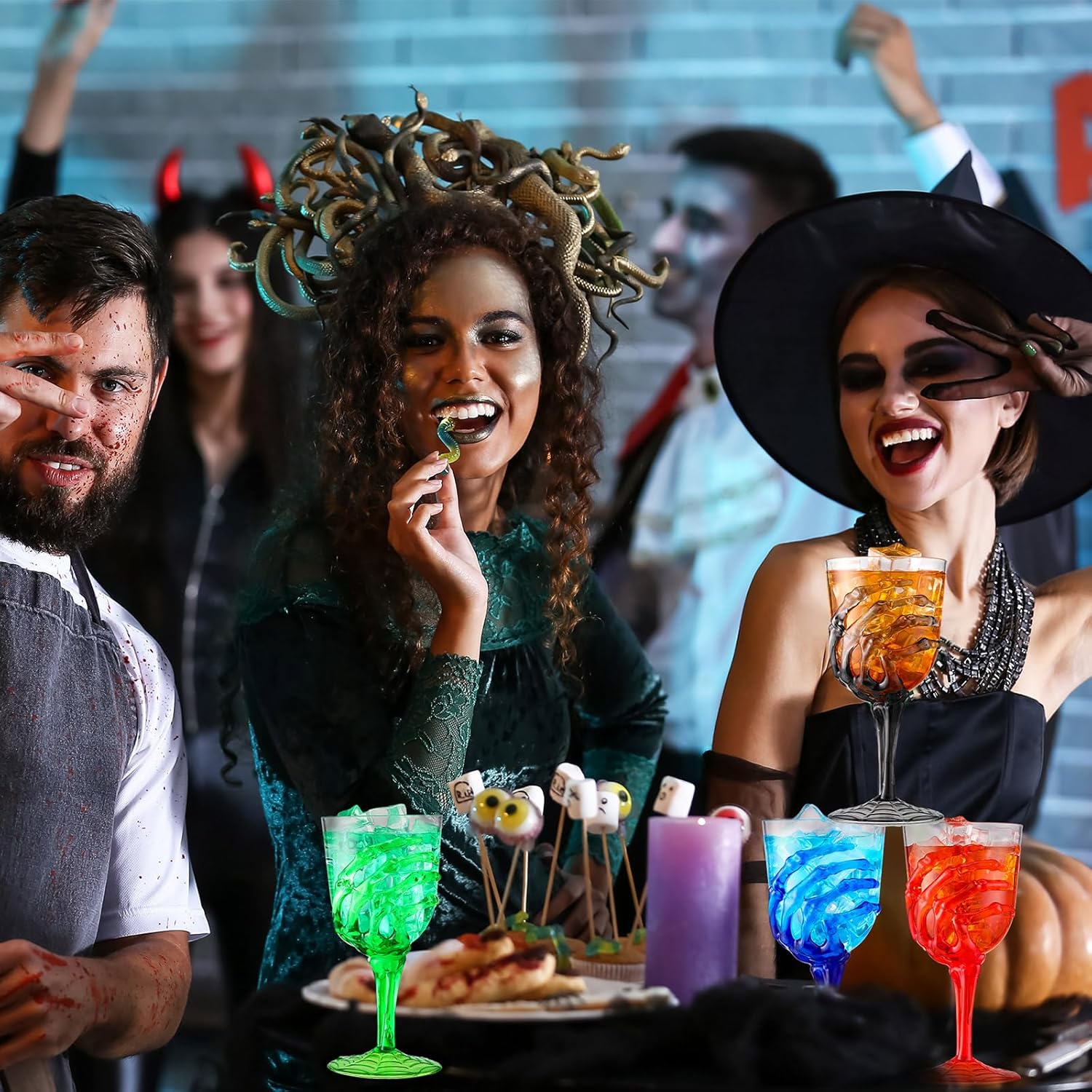 - Wide Applications: these Halloween plastic stemmed glasses can be applied for many occasions, such as Halloween parties, haunted houses, festivals, ceremonies, and various other themed events; You can fill them with a wide variety of items, including wine, champagne, cocktails, juice, soda, candy, and more