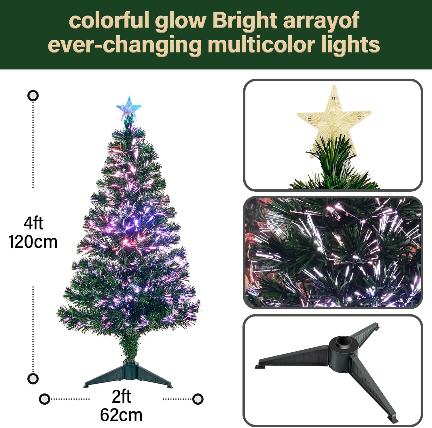 - ★Pre-lit fiber optic and Lighted Top Star: this Optical Fiber Xmas Tree has multi-colored fiber optic and one top star with automatic continuous lighting and flashing modes, emitting a captivating glow while bringing a festive atmosphere to your home.