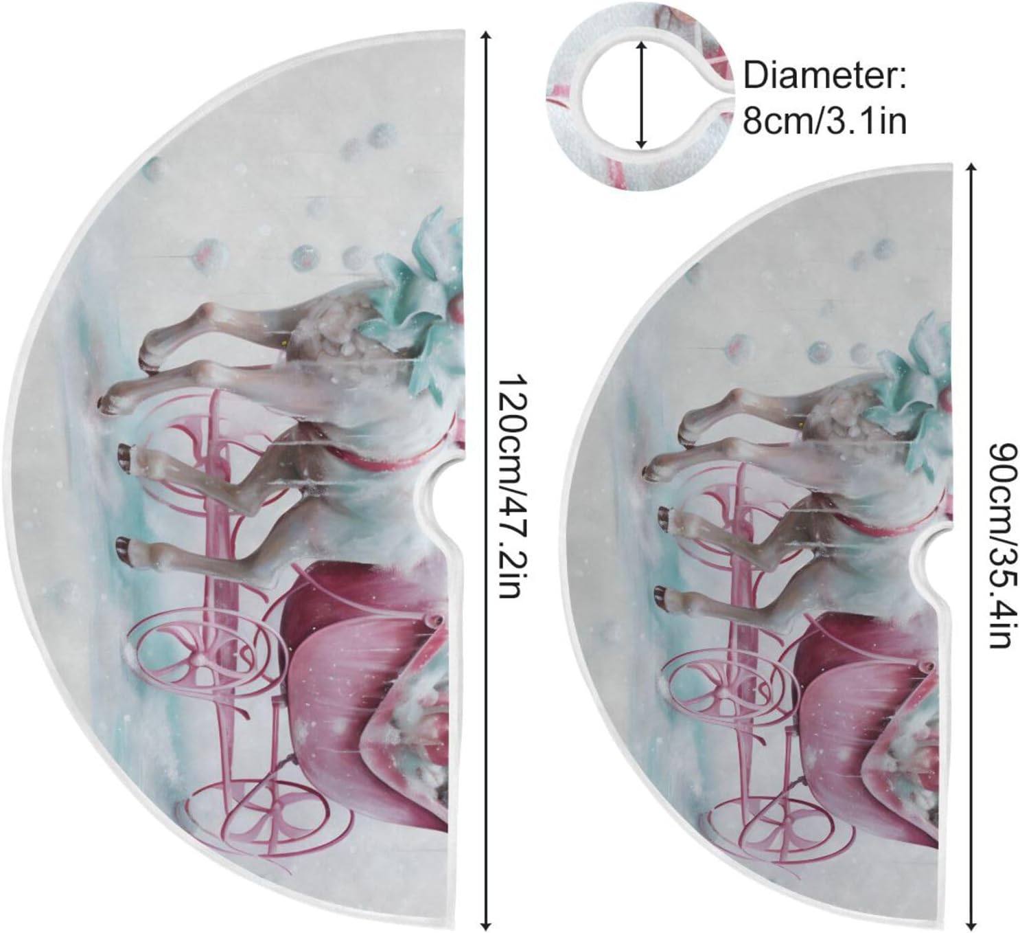 Christmas Tree Skirt, 48 Inch Santa Claus Pink Reindeer Xmas Tree Mat for New Year Party Decorations