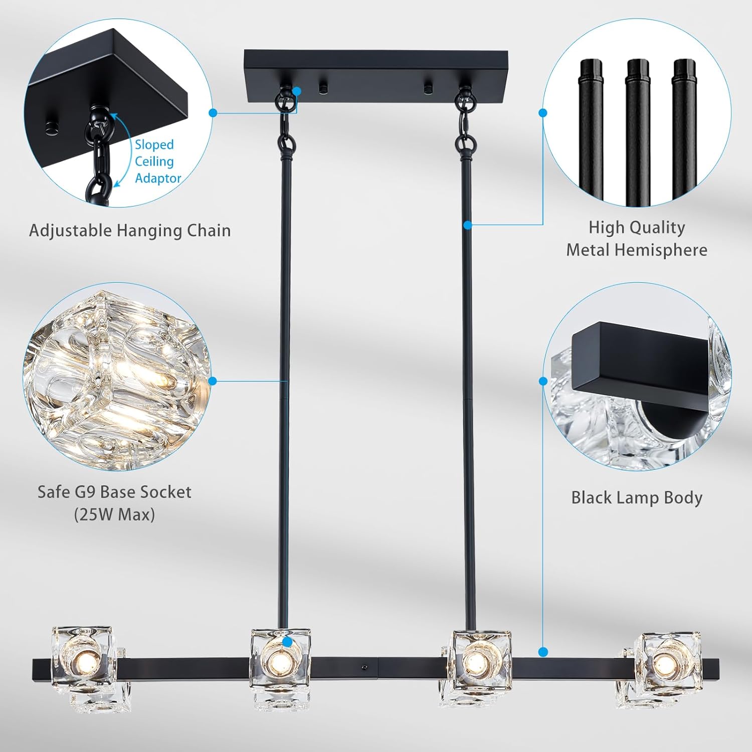 - Chandeliers for Dining Room Over Table: Elevate your dining experience with our black light fixture, featuring 8 exquisite lampshades made of high-quality transparent glass. The premium metal construction enhances both aesthetics and longevity for an impressive centerpiece in your home