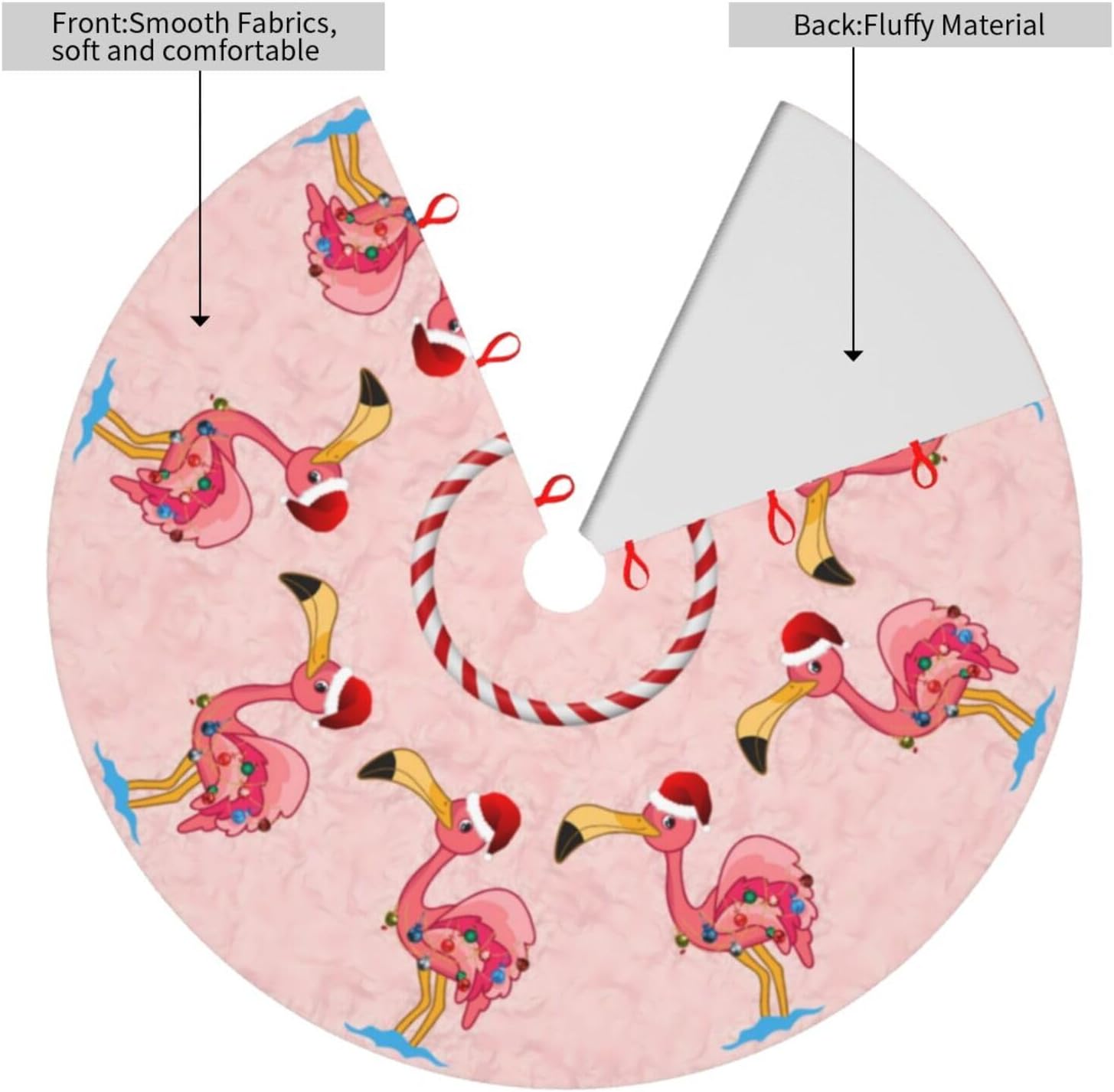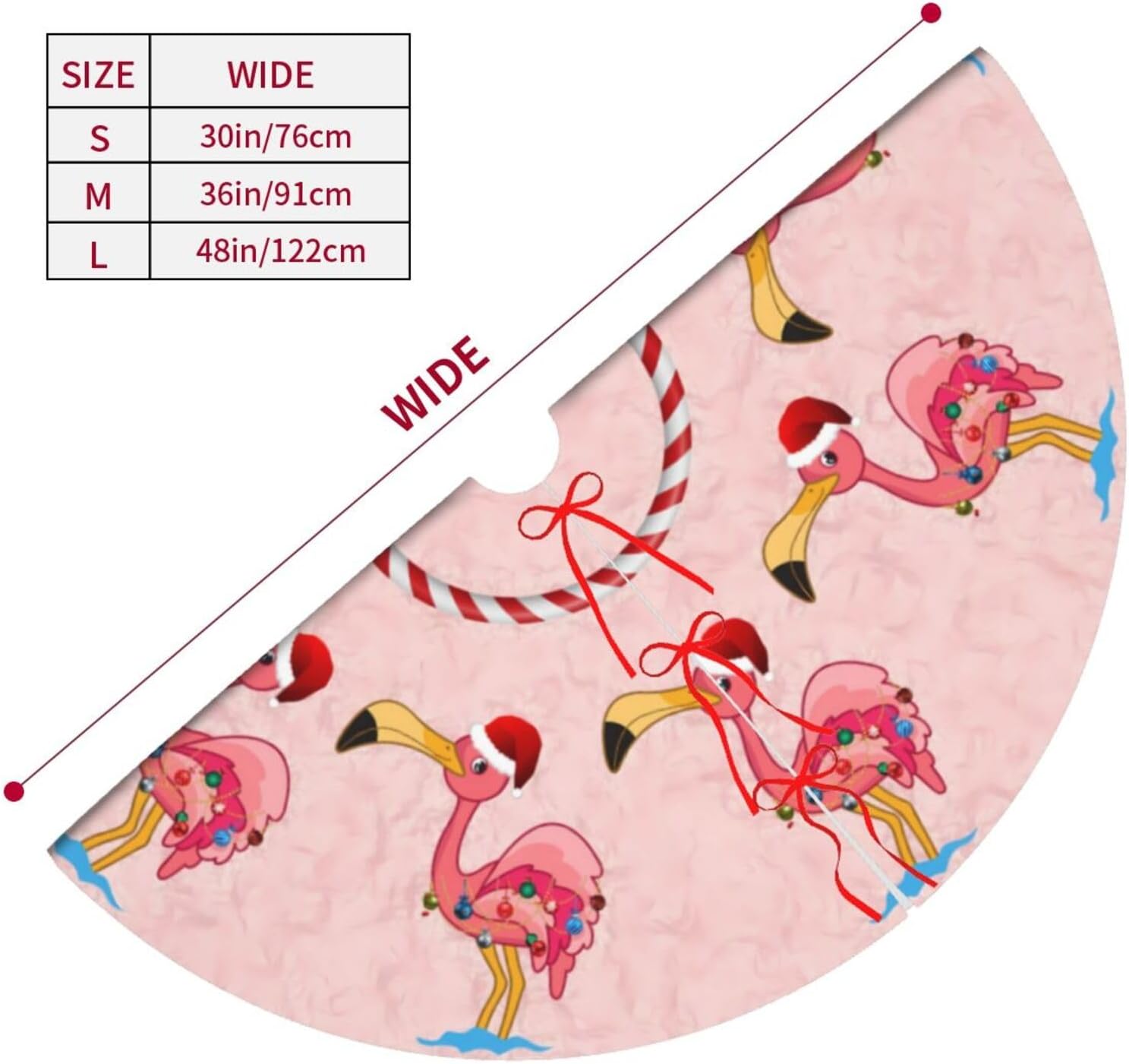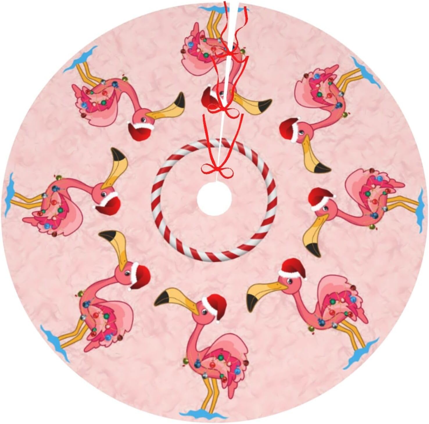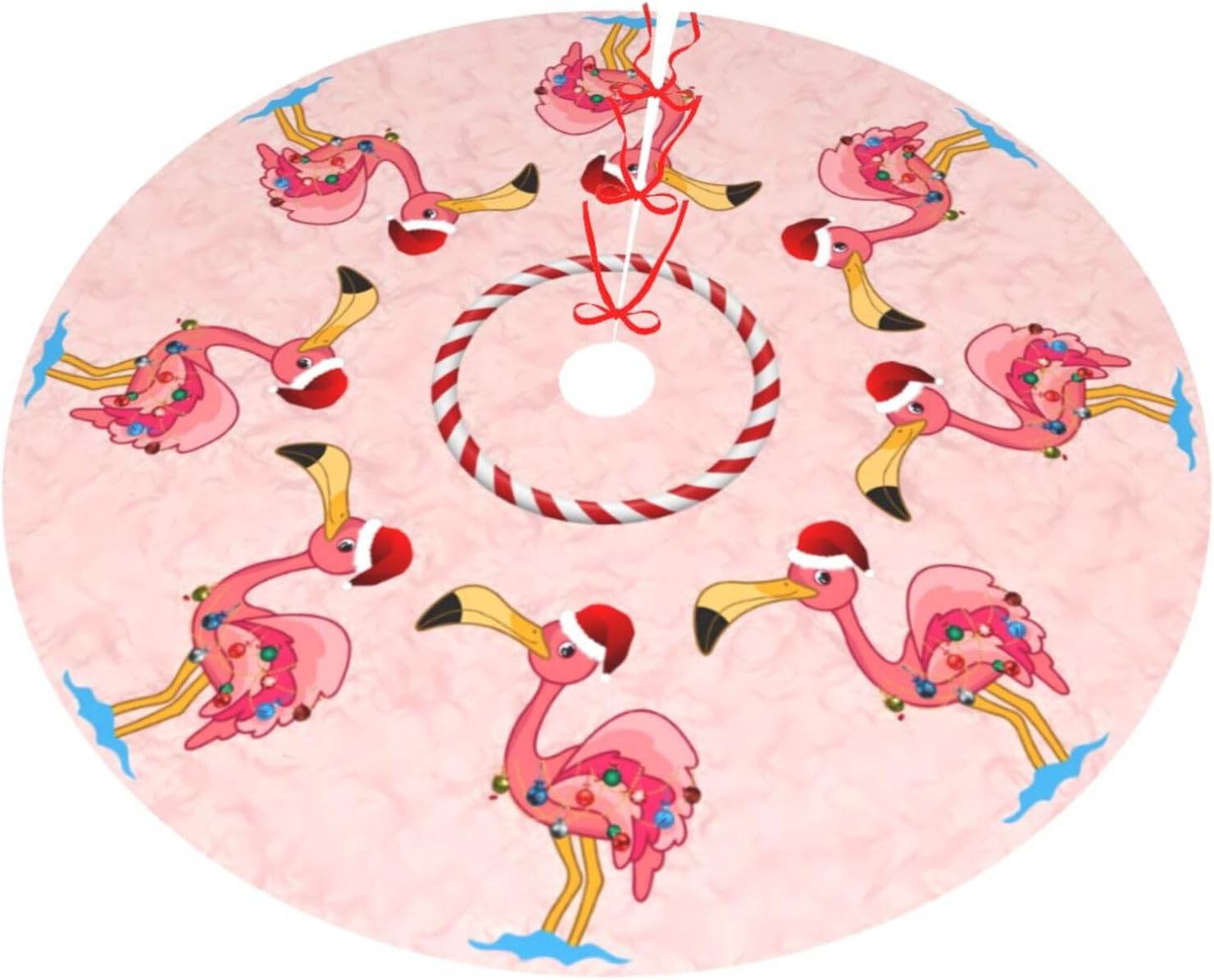 48" Large Christmas Tree Skirt, Christmas Decorated Flamingo Pattern Tree Mat Base Cover for Xmas Festive Holiday Party Decoration Ornaments