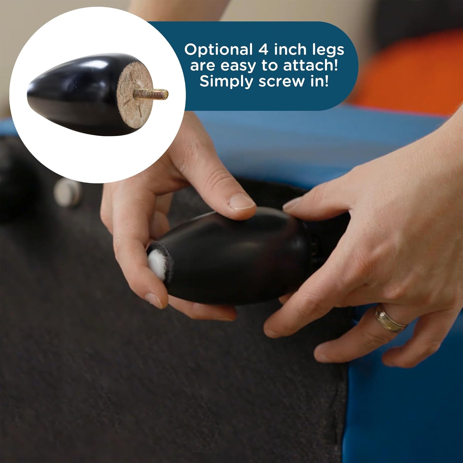 - CHAIR GROWS WITH YOUR CHILD: The adjustable toddler chair and sofa set includes 8 black wooden legs that increase each piece's height 4 inches, no hardware required