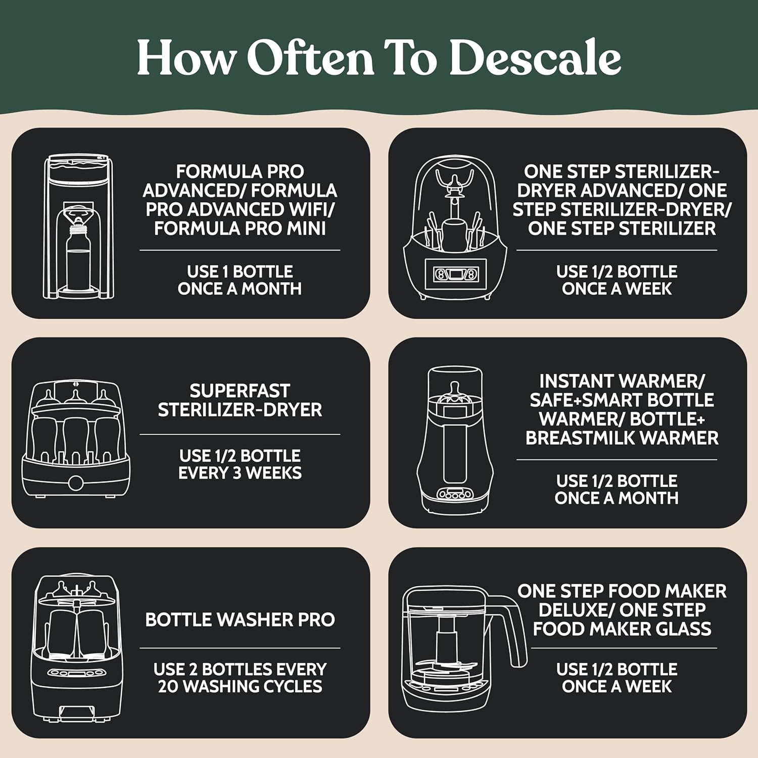 - FULL COMPATIBILITY - Roobi's descaling solution can be used on all Baby Brezza models including Formula Pro, Instant Warmer, Bottle Washer Pro, One Step Sterilizer and more Baby Appliances.