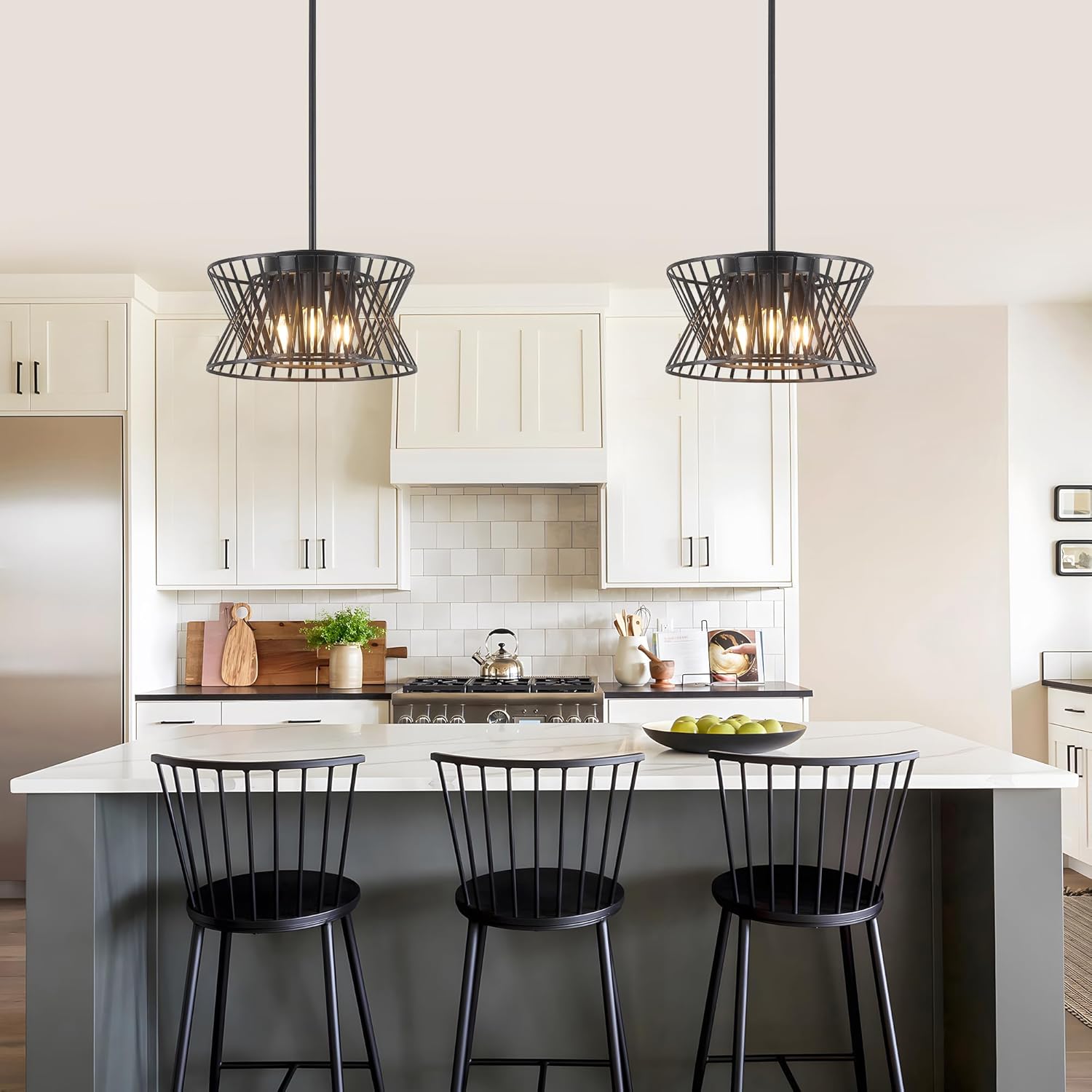 - Vintage Geometric Design: This black kitchen island iron chandelier is made of high quality metal, the geometric frame builds a stylish shape, not only is it sturdy and durable, but also the one-of-a-kind design brings a unique and chic lighting effect to your room