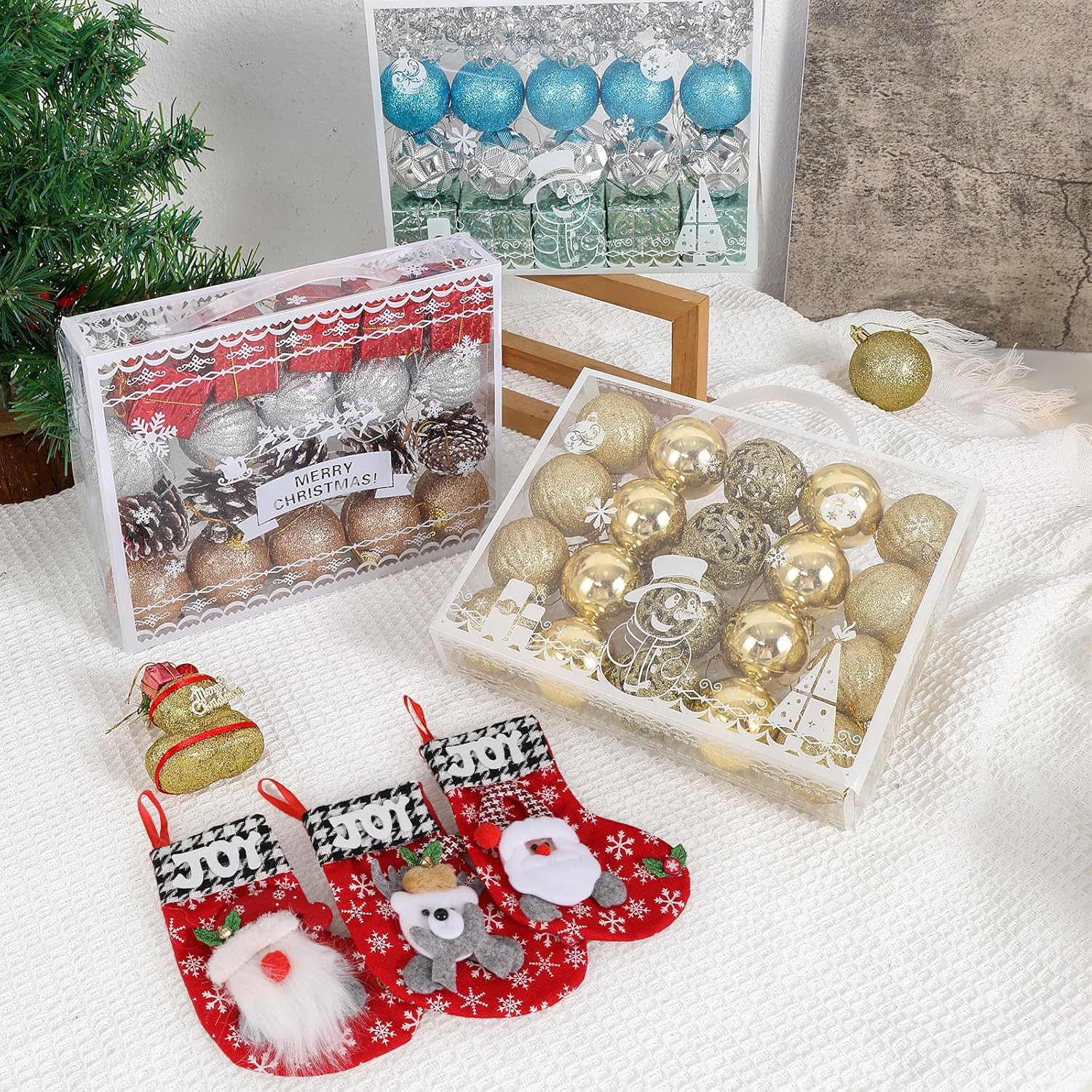 - Includes Decorations: Standing tall and proud, this enchanting tree is adorned with 60 exquisite decorations that capture the magic of Christmas. From shimmering ornaments to twinkling lights, each decoration adds a delightful touch to your holiday display. To make your celebrations even more special, weβve included 3 charming Christmas socks! Perfect for filling with treats or small gifts, these festive socks will delight children and adults alike. They add a traditional touch to your tree and are sure to bring smiles to everyone who sees them