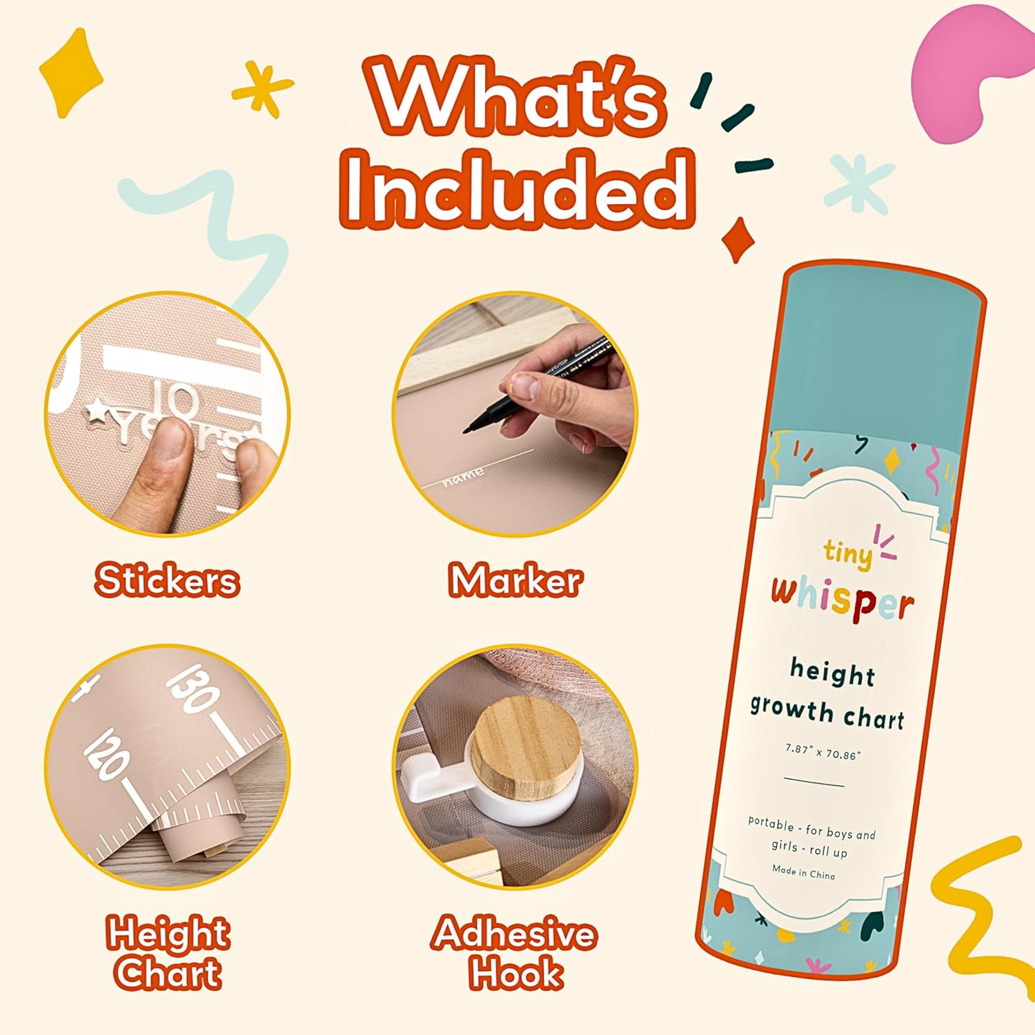 Height Chart for Kids Customizable Kids Height Wall Chart with Stickers, Marker & Hook Hanging Growth Chart Measurement for Wall Easy Installation for Baby Room Nursery and Playroom