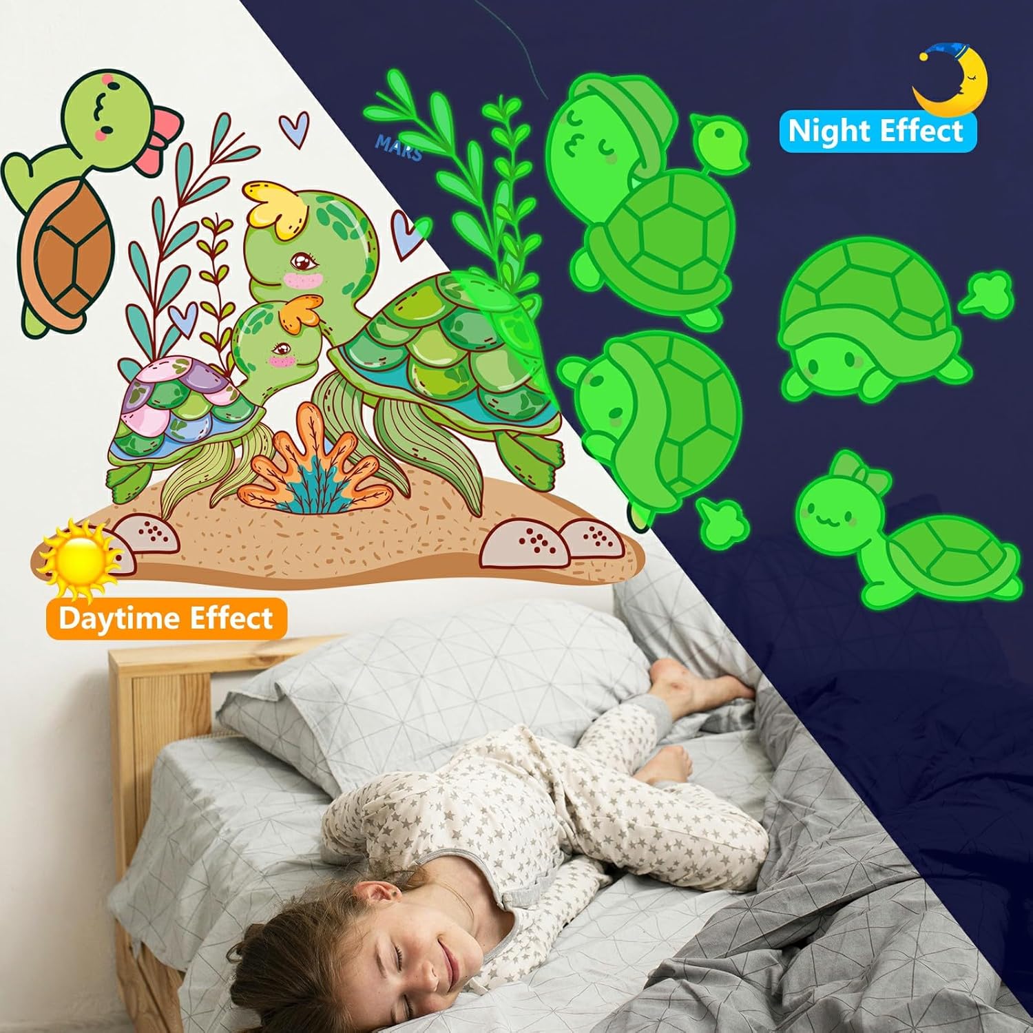 - β¦ DIY Wall Decals: You will get 4 sheets (Size of each sheet: 11.8 x 8.26 inch) of glowing Cute Turtles wall decals in a set, can be combined arbitrarily.The cute sea turtle wall stickers can be easily matched with a variety of home decoration styles, children can DIY a fairy-tale ocean world according to their own preferences.