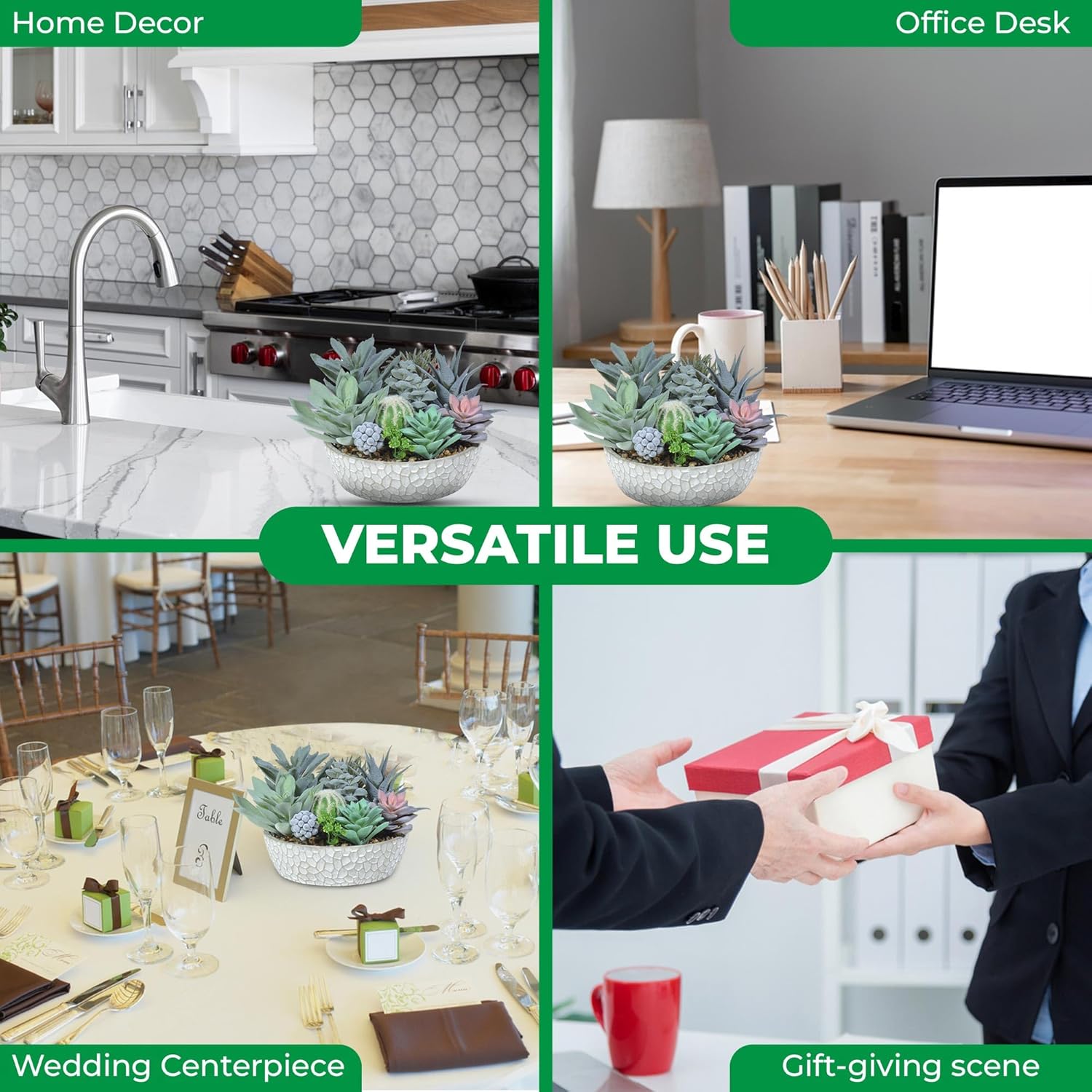 - [Note] Please note that slight variations in color or appearance may occur due to the handmade nature of the product. These succulents plants artificial require no maintenance—just set them up and enjoy their realistic beauty without worrying about watering or sunlight.