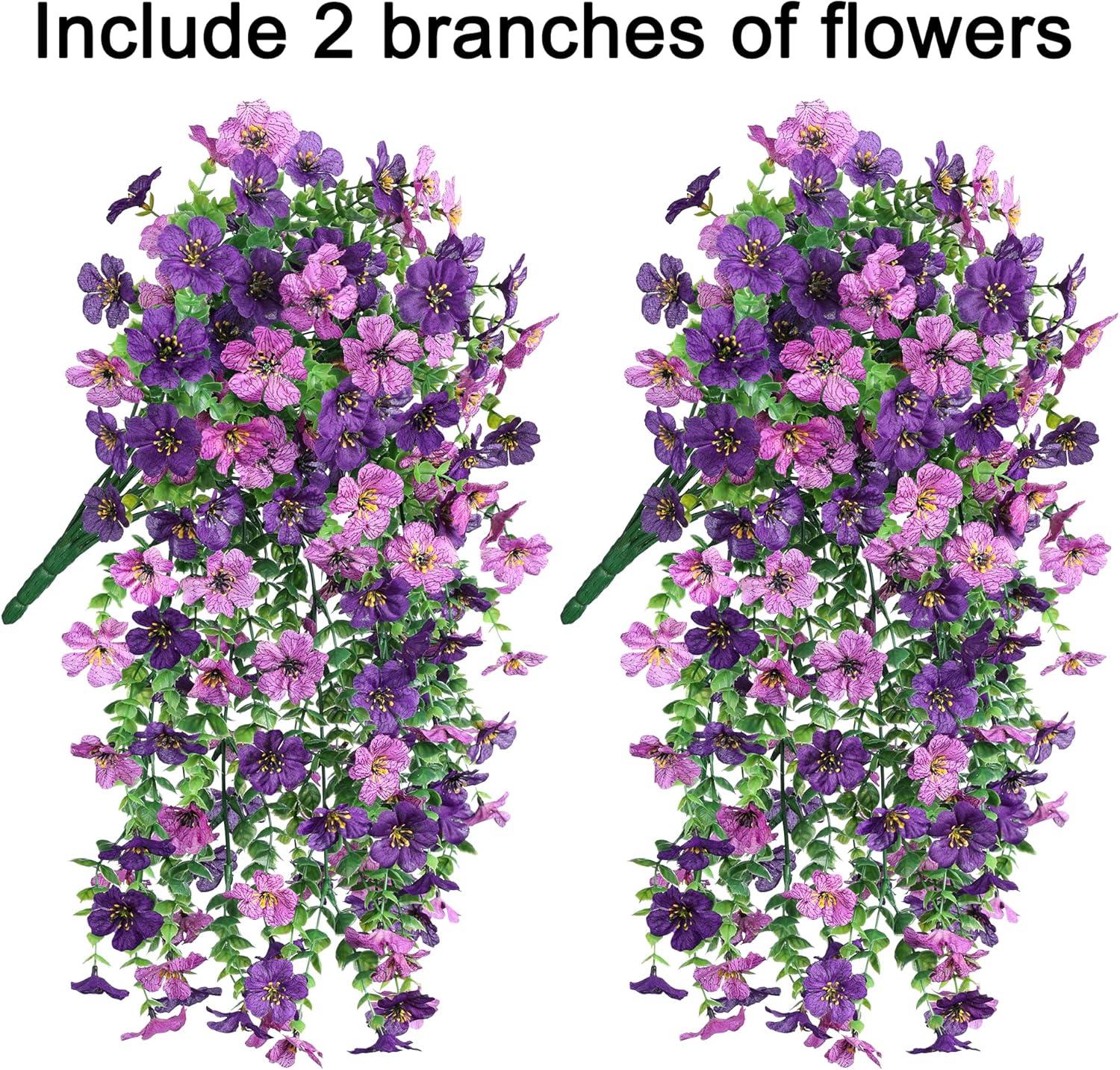 - Durable and UV Weather-Resistant: The fake hanging plants flowers are made of high quality silk cloth and plastic, UV and all weather resistant, waterproof and no fade in the sun and rainstorm.