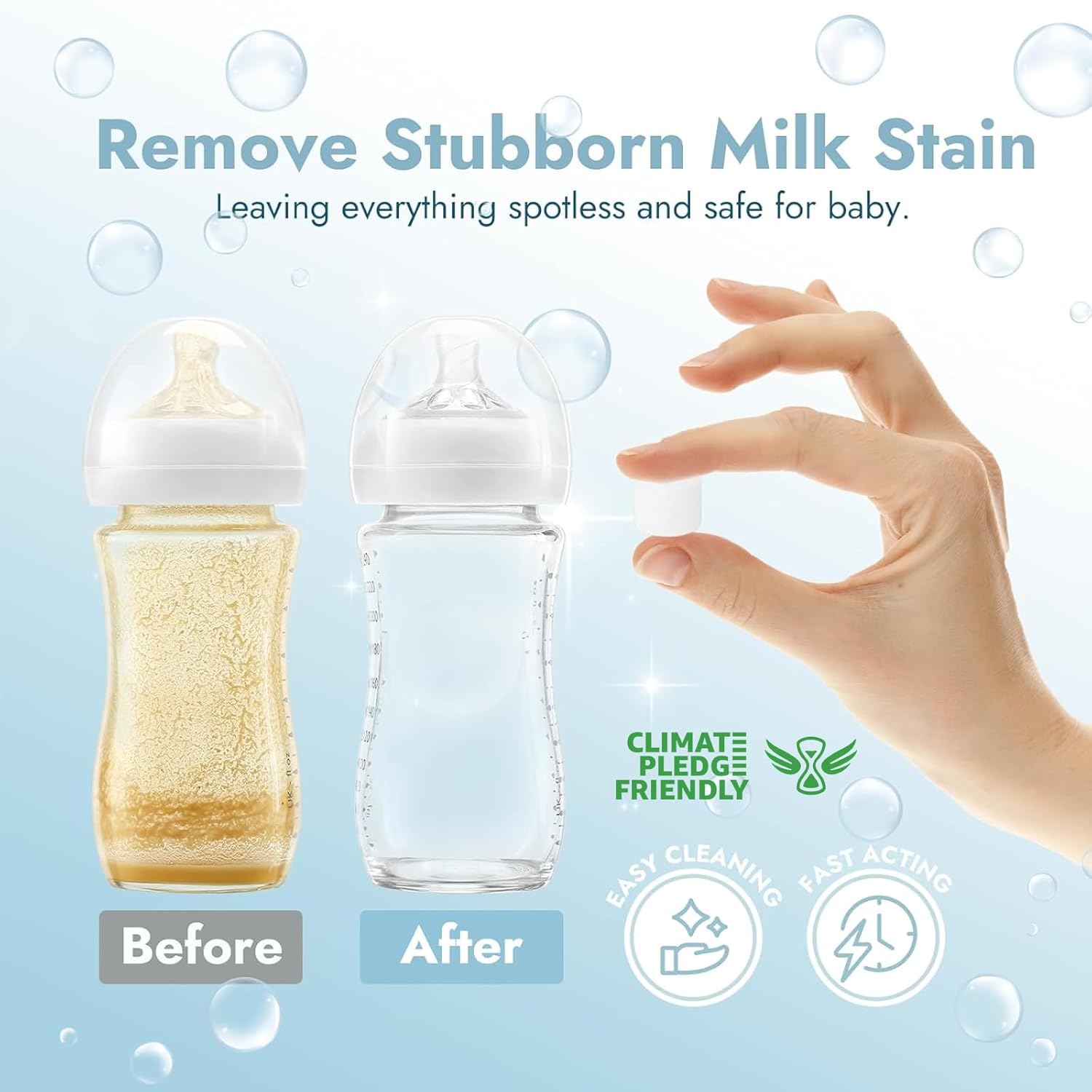 - 【Powerful Cleaning in a Small Tablet】These are designed with high concentration cleaning power to effectively remove stubborn milk residues and odors from baby bottles, bottle pump parts, and other infant essentials, saving you time and effort while delivering outstanding results.