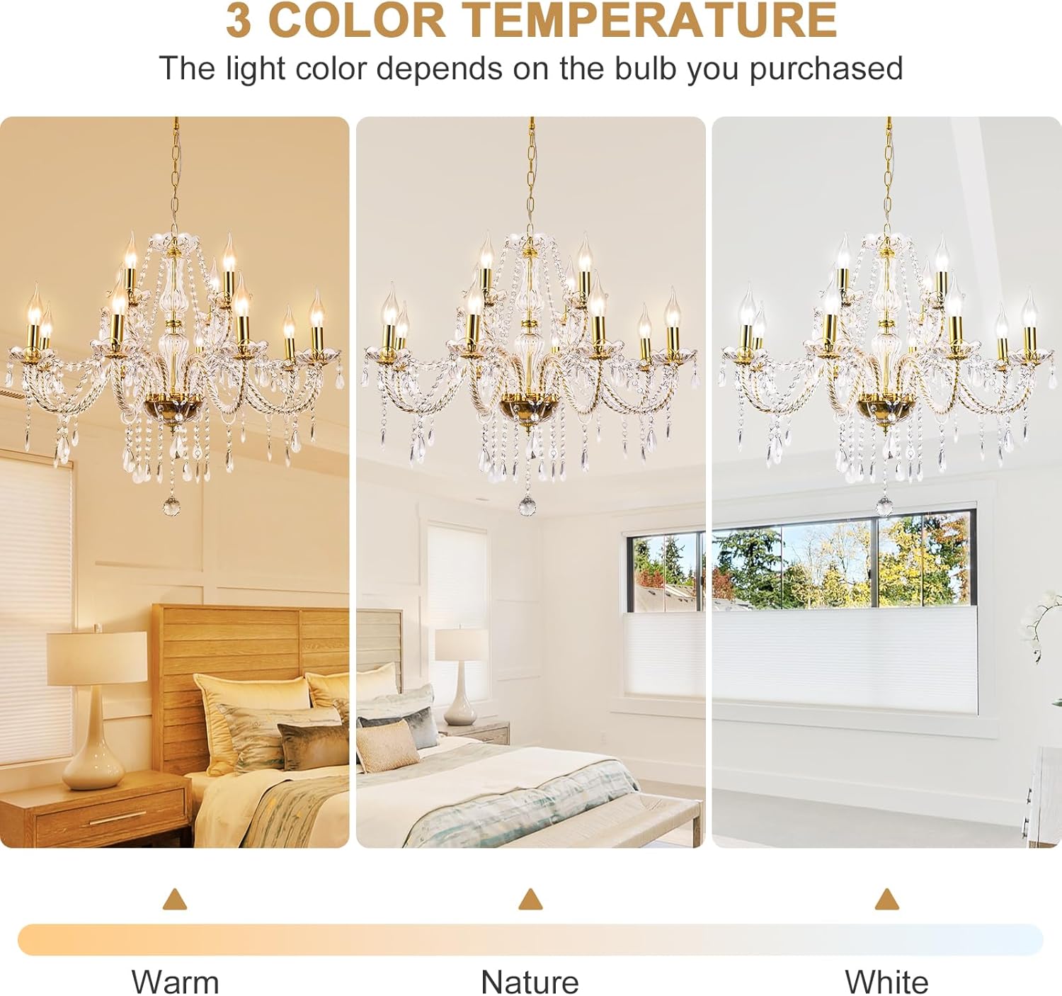 Modern Elegant 10 Lights K9 Crystal Glass Chandelier Golden Pendant Ceiling Lighting European Style for Dining Living Room Bedroom Transparent, 10 E12 Bulbs Required