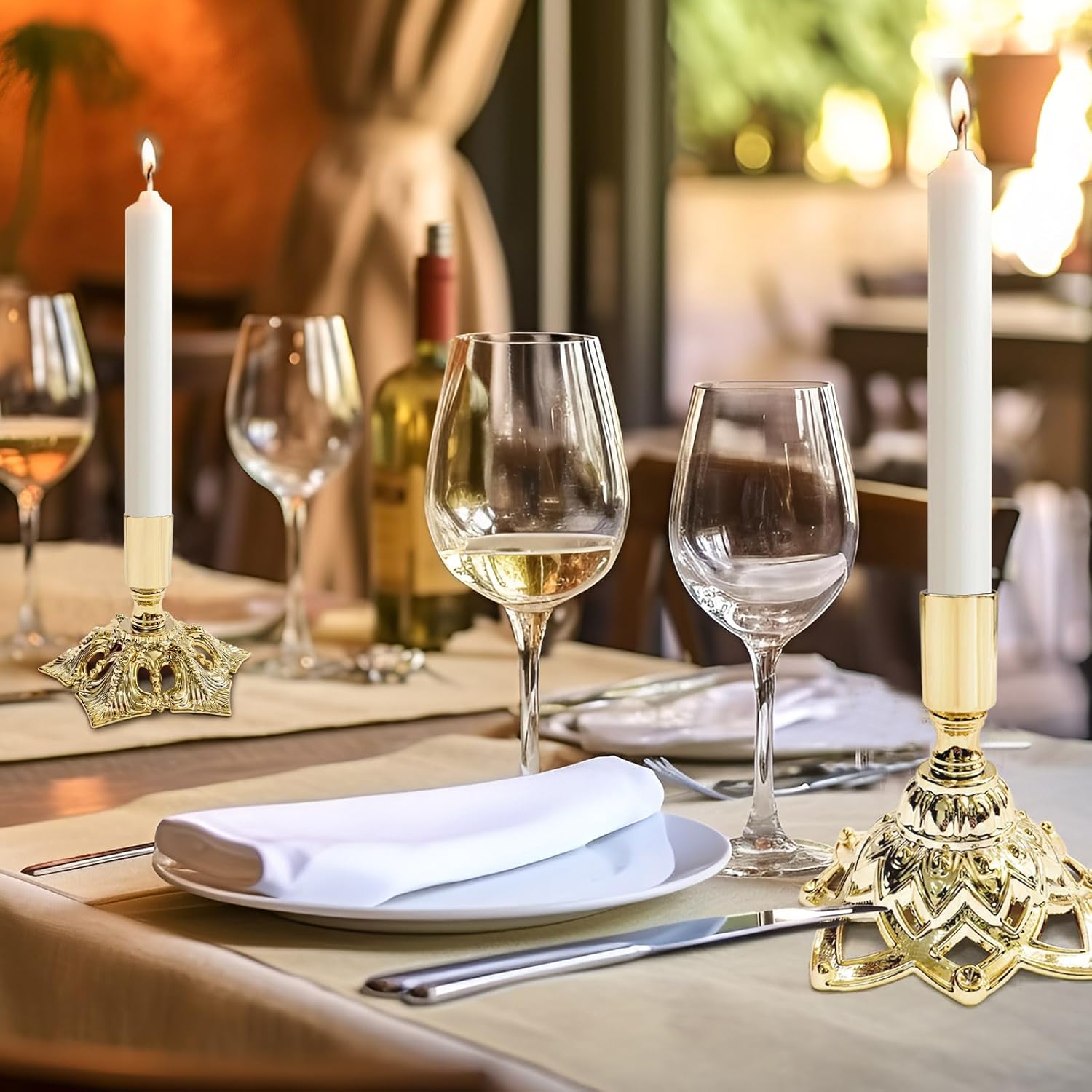 - Sturdy Gold Metal Candle Holders β Crafted from high-quality alloy, these taper candle holders feature a professionally plated and polished finish that is durable, rust-resistant, and easy to clean. Designed to securely hold standard ΒΎ-inch taper candles.
