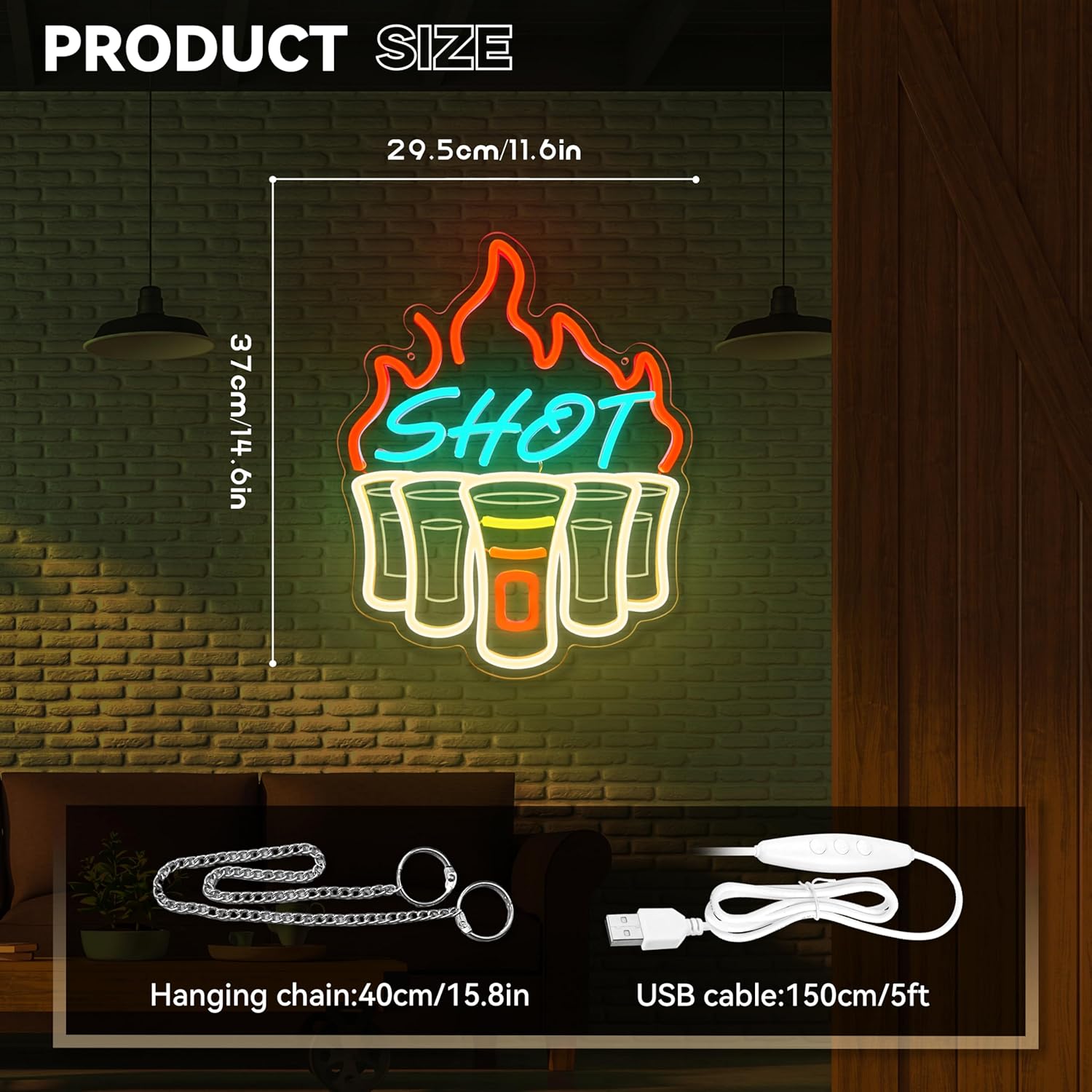 - 【Shot Neon Sign】 I believe that many people like to drink shot wine. This neon light can perfectly create a hot, joyful and tipsy atmosphere, making people can't wait to drink a glass of shot wine and let the alcohol bloom hotly in their mouths.