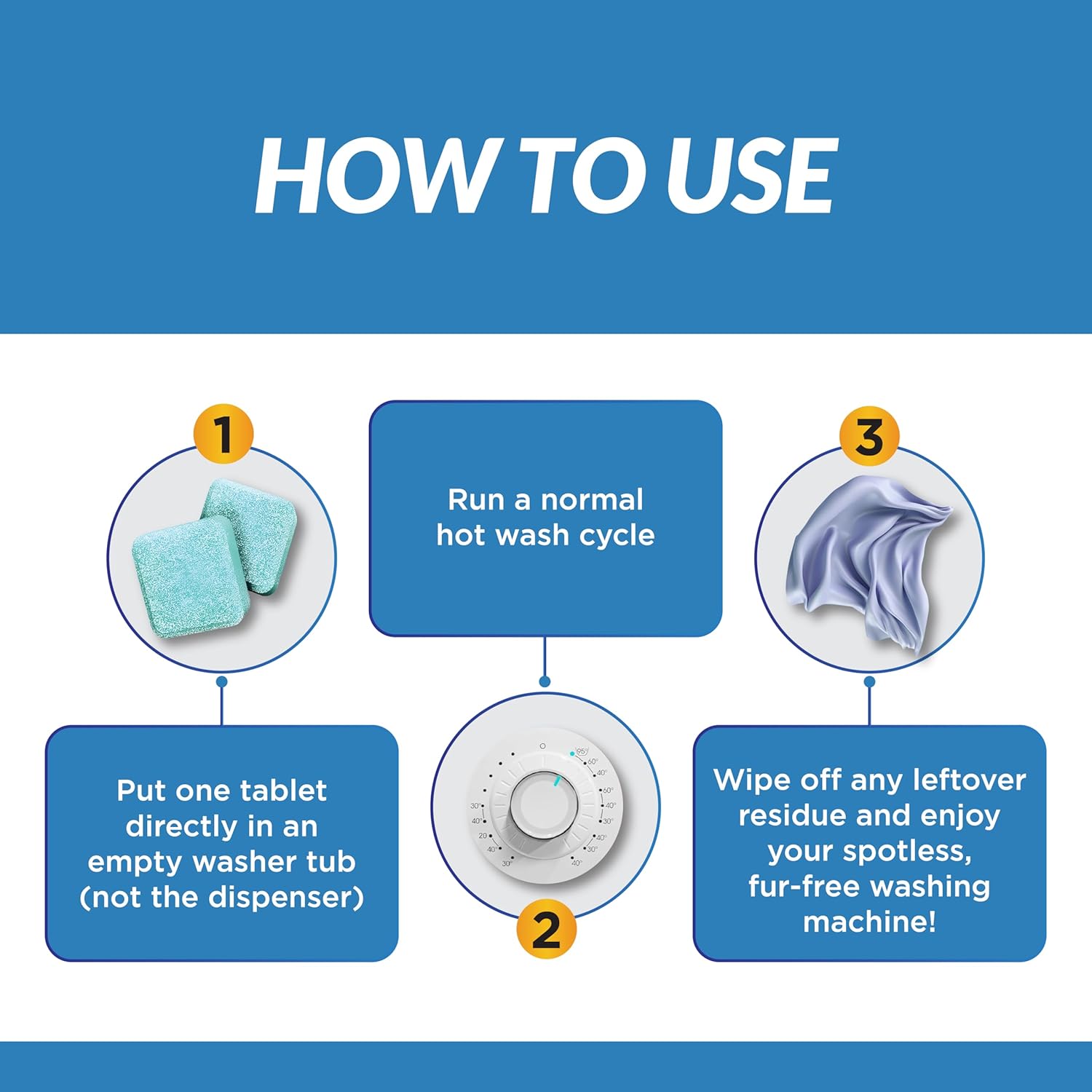 Washing Machine Cleaner Tablets - 24 Count 1-Year Supply | Formulated for Pet Owners | Pet-Friendly Deep Descaler | HE, Top & Front Load | Septic Safe & Eco-Friendly | Eliminates Odor & Residue
