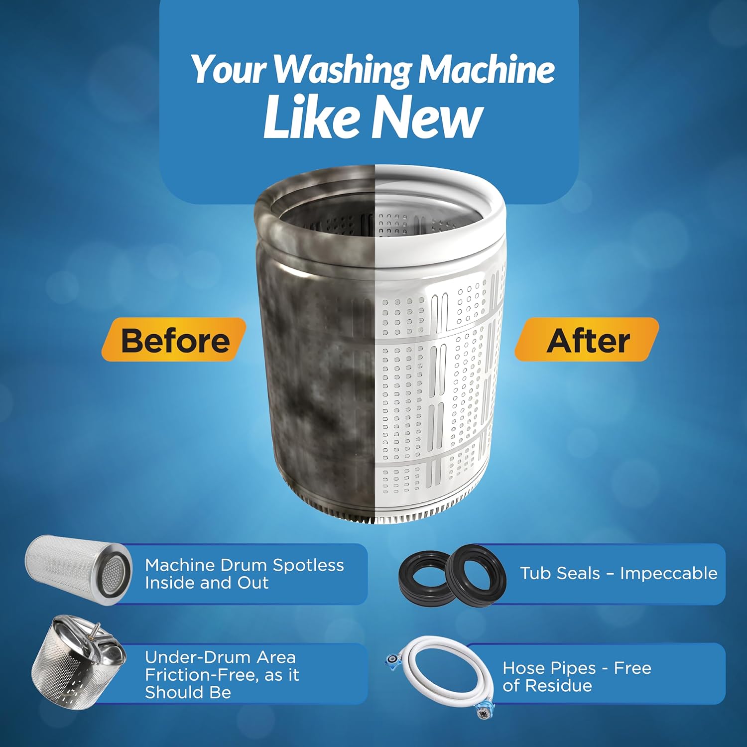 - Powerful Deep Cleaning Formula β Penetrates and dissolves stubborn grime, detergent build-up, and hard water residue in HE, front and top load washers.