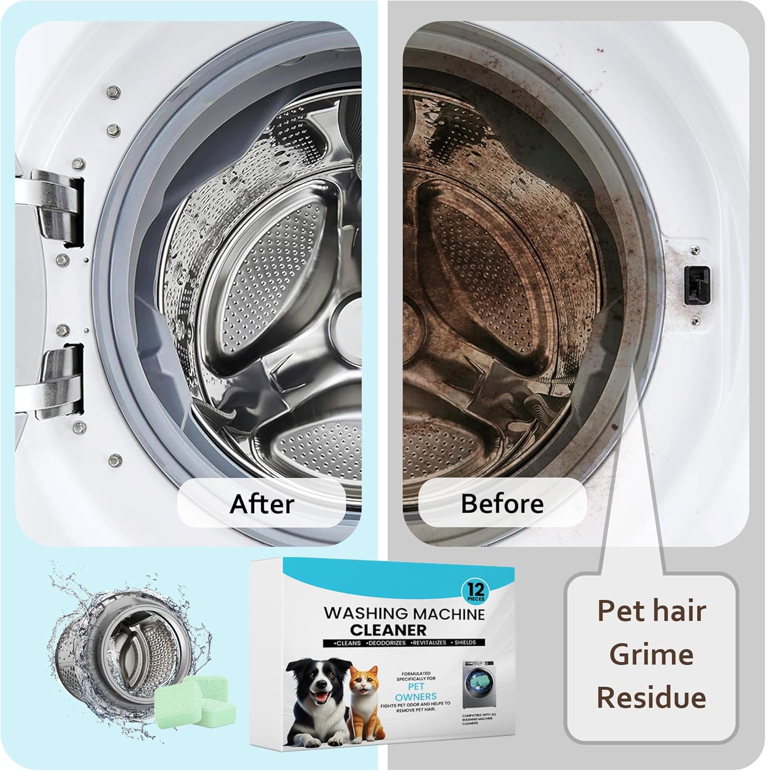 Washer Machine Cleaner Tablets-24Pack-12 Month Supply,Formulated for Pet Owners Washing Machine Cleaner,Compatible with HE,Easily pet hair remover for laundry.Top & Front Load Washer.Septic Safe.