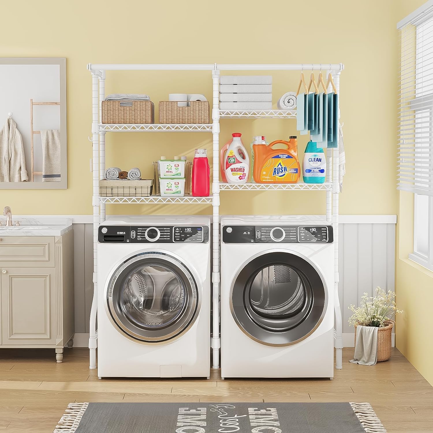 - [Long-lasting and Durable]: The over-washer and dryer storage rack features anti-rust powder coating for humidity-prone laundry rooms or garages