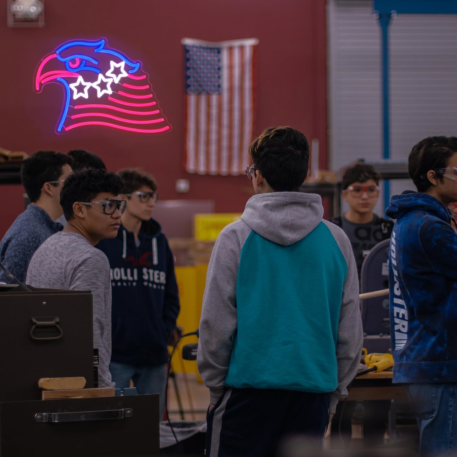 - 【Eagle Flag Neon Sign】 This patriotic decoration neon wall light has a unique design, with bald eagle, Stars and Stripes. Light up the USA flag neon LED sign to add vibrant colors to your room. The eagle neon sign is for long-term use, low energy consumption, no flicker, no heat.