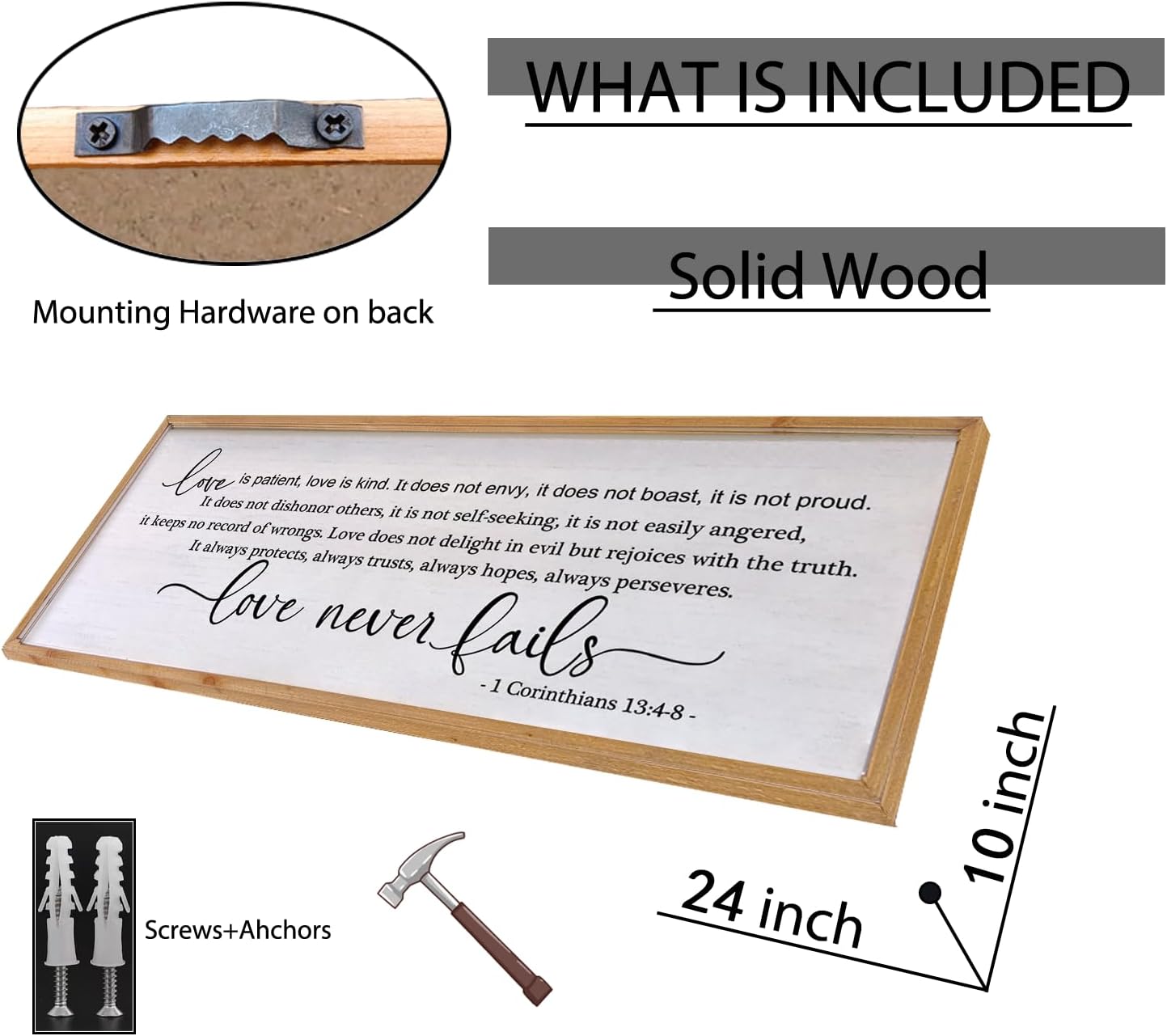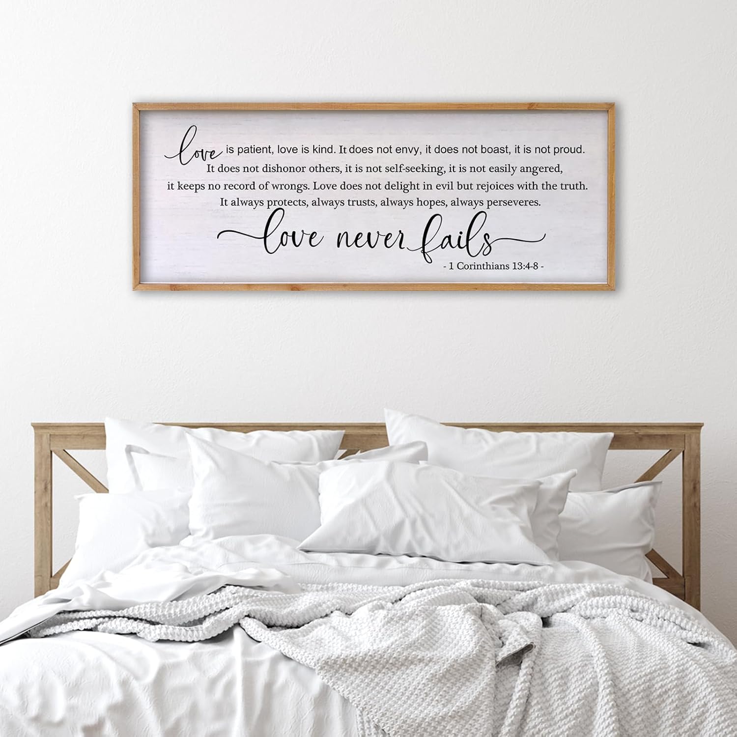 Love is Patient Love is Kind Wall Art 24×10 Inch Bible Verse 1 Corinthians 13 Christian Hanging Wood Framed Decor Sign (Wood)