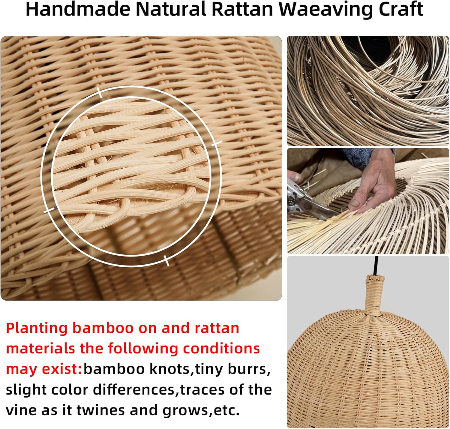 - 【Hand-Woven Rattan Chandelier Natural Material】Rattan craft is selected from the trees we grow , which undergoes various processing procedures. This Rattan craft is heat resistant, fade resistant, safe and healthy