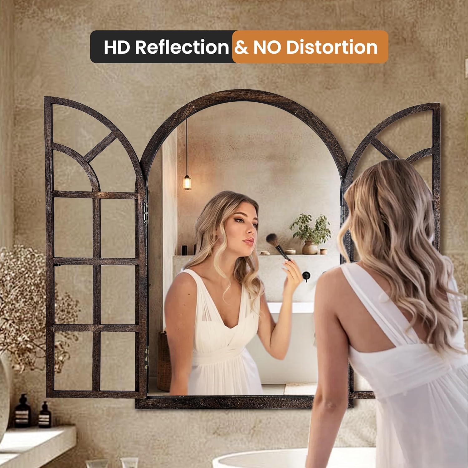 - 【Decorative Arched Frame】The elegant arched top and divided window-style panes create the illusion of a real window, making rooms feel brighter and more open. A timeless decor piece that blends functionality with artistry.