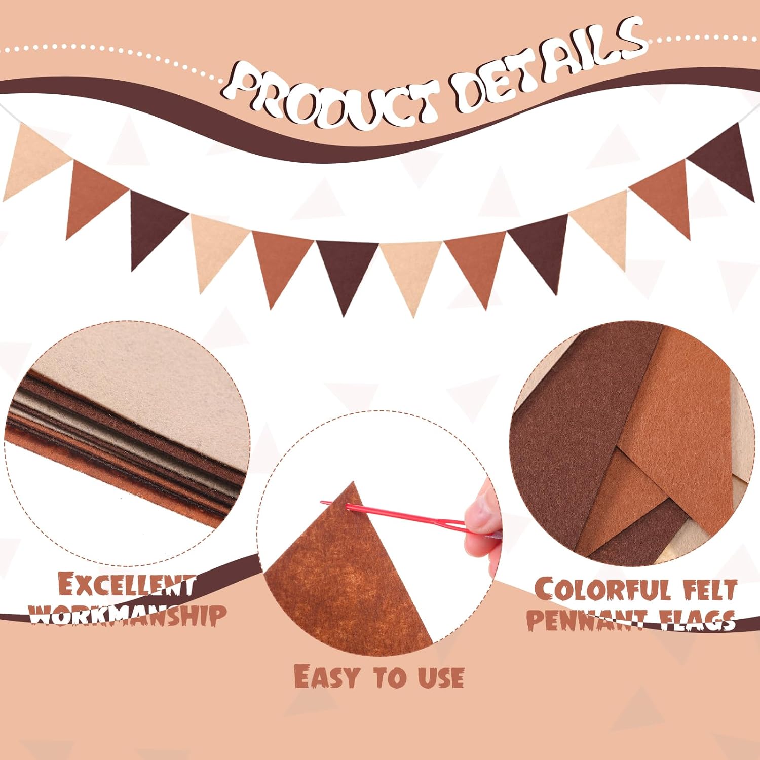 Irenare 9.8 ft Pom Pom Garland Felt Colorful Tassel Banner Christmas Party Pompoms Garland Decorations Felt Pennant Banner for Classroom Home Mantel Fireplace Birthday(Gradient Brown)