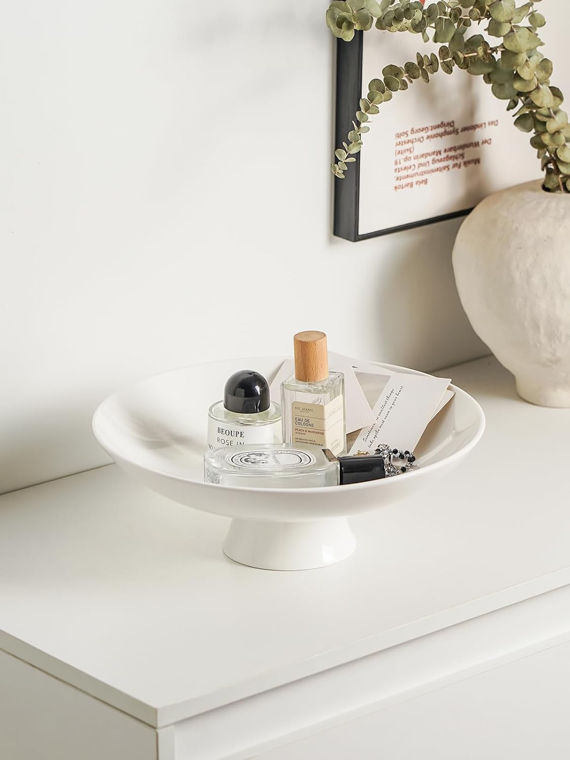 Kanwone Large Fruit Bowl for Kitchen Counter - Decorative Bowls for Home Décor - Ceramic Fruit Bowl, Pedestal Bowl - Modern Key Bowl for Entryway Table - 11.5 Inches, White