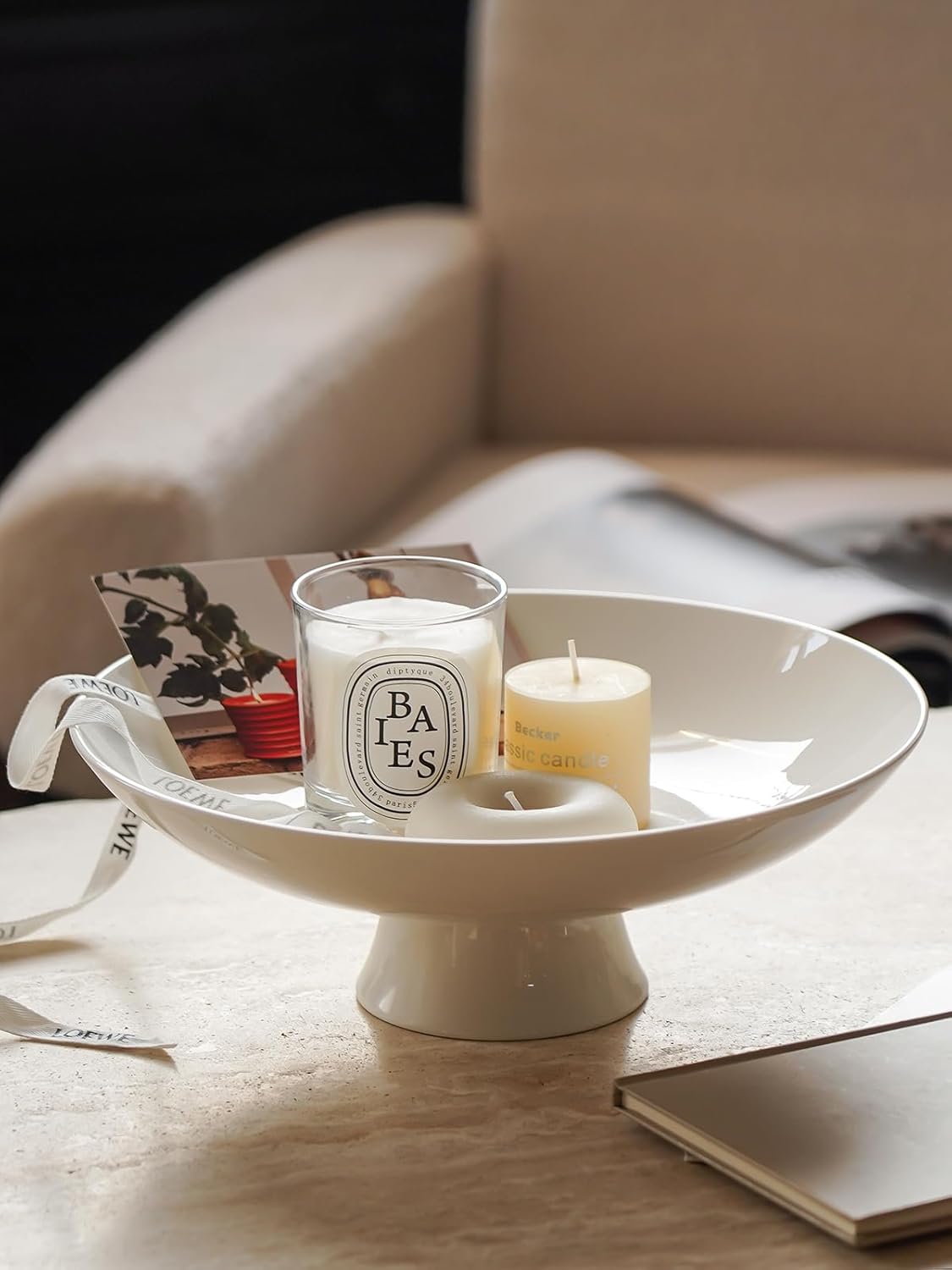 - MULTI-FUNCTIONAL - This footed bowl is large and sturdy enough to hold fruits, veggies, bread, snacks, or candy in the kitchen. It would also be suitable as a modern key bowl for an entryway table to hold keys and small items. Beyond practicality, you can use it as a decorative bowl, filling it with rattan balls, candles, dried flowers, or seasonal treasures like spring eggs or Christmas balls to add a festive touch to your living room or bedroom.
