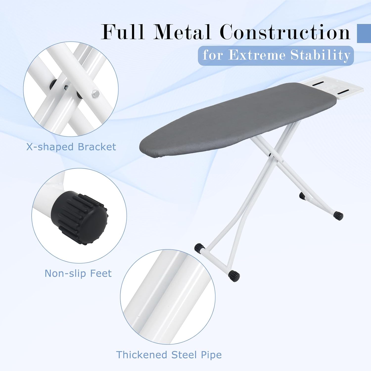 Ironing Board 48" X 13" with Safety Iron Rest Height Adjustable Iron Table Features Reinforced Steel Legs, Heat Resistant Cover, Grey