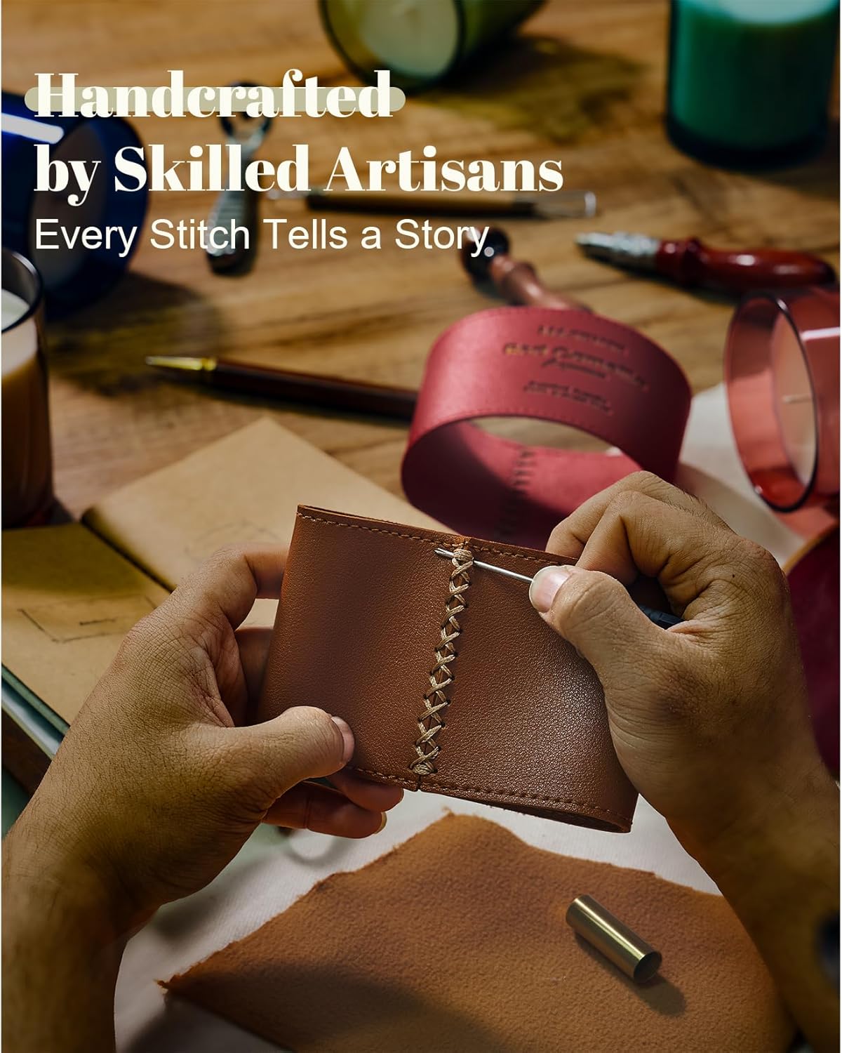 - Artisan-Crafted Luxury: Hand-Stitched Leather & Hand-Poured Wax Elevate your home with M&Sense candles β each jar features a bespoke leather jacket meticulously hand-stitched by skilled artisans and filled with premium vegan soy wax hand-poured for artisanal perfection. Ideal for upscale offices, homes or elegant gifting, these scented candles blend luxury with functionality