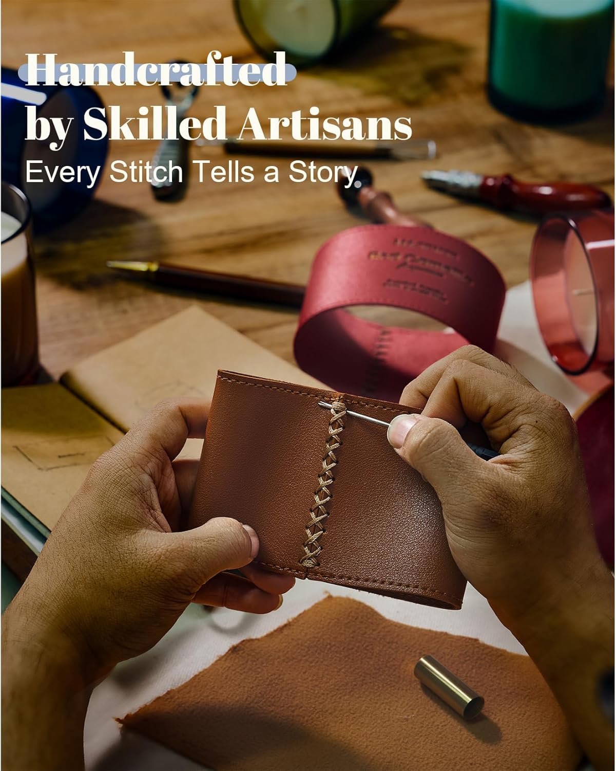- Artisan-Crafted Luxury: Hand-Stitched Leather & Hand-Poured Wax Elevate your home with M&Sense candles β each jar features a bespoke leather jacket meticulously hand-stitched by skilled artisans and filled with premium vegan soy wax hand-poured for artisanal perfection. Ideal for upscale offices, homes or elegant gifting, these scented candles blend luxury with functionality