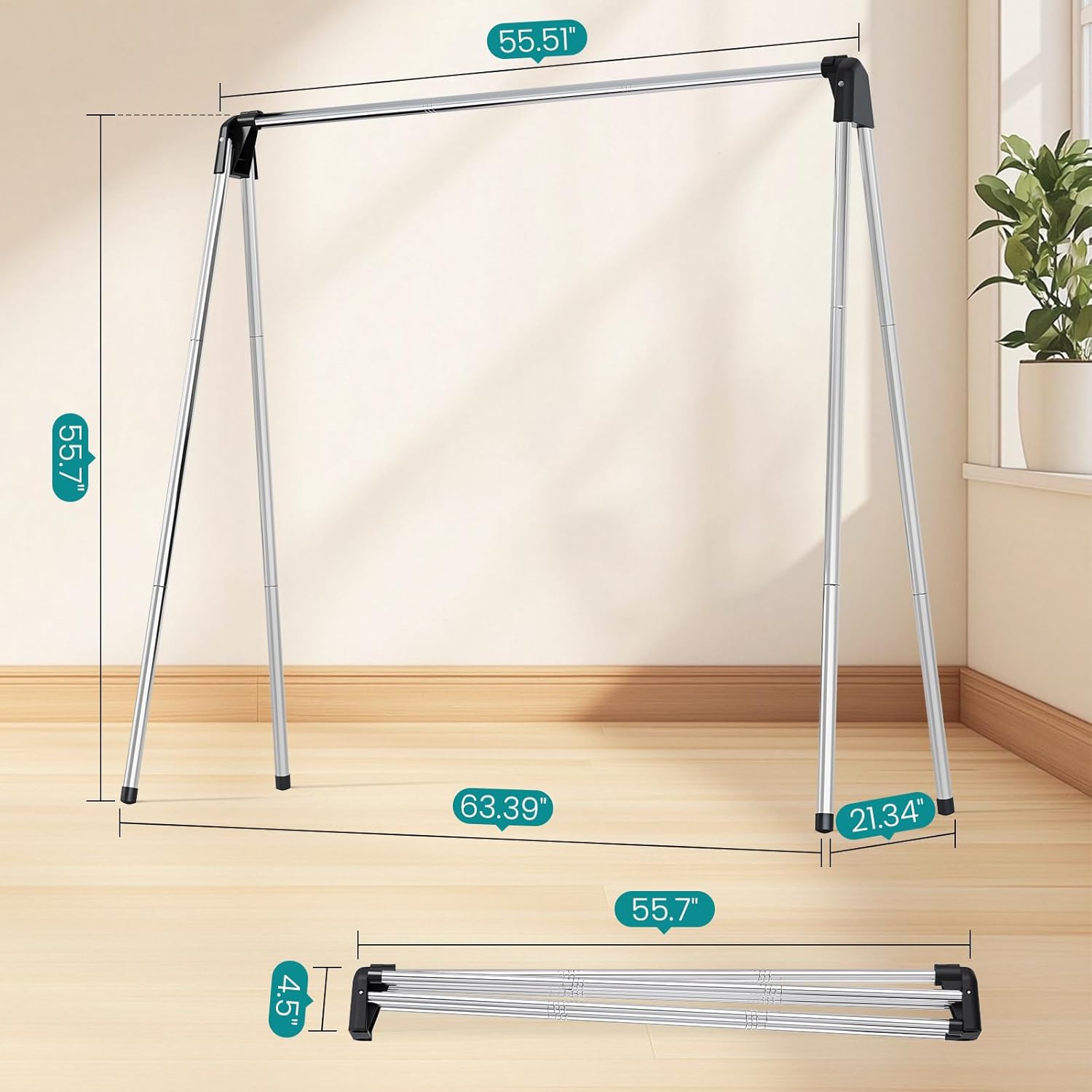 • Generous Drying Capacity: This foldable laundry drying rack offers 55 inches of drying space, allowing you to hang a full load of laundry in one go. No more needing to drape extra items over chairs or hang them in doorways.