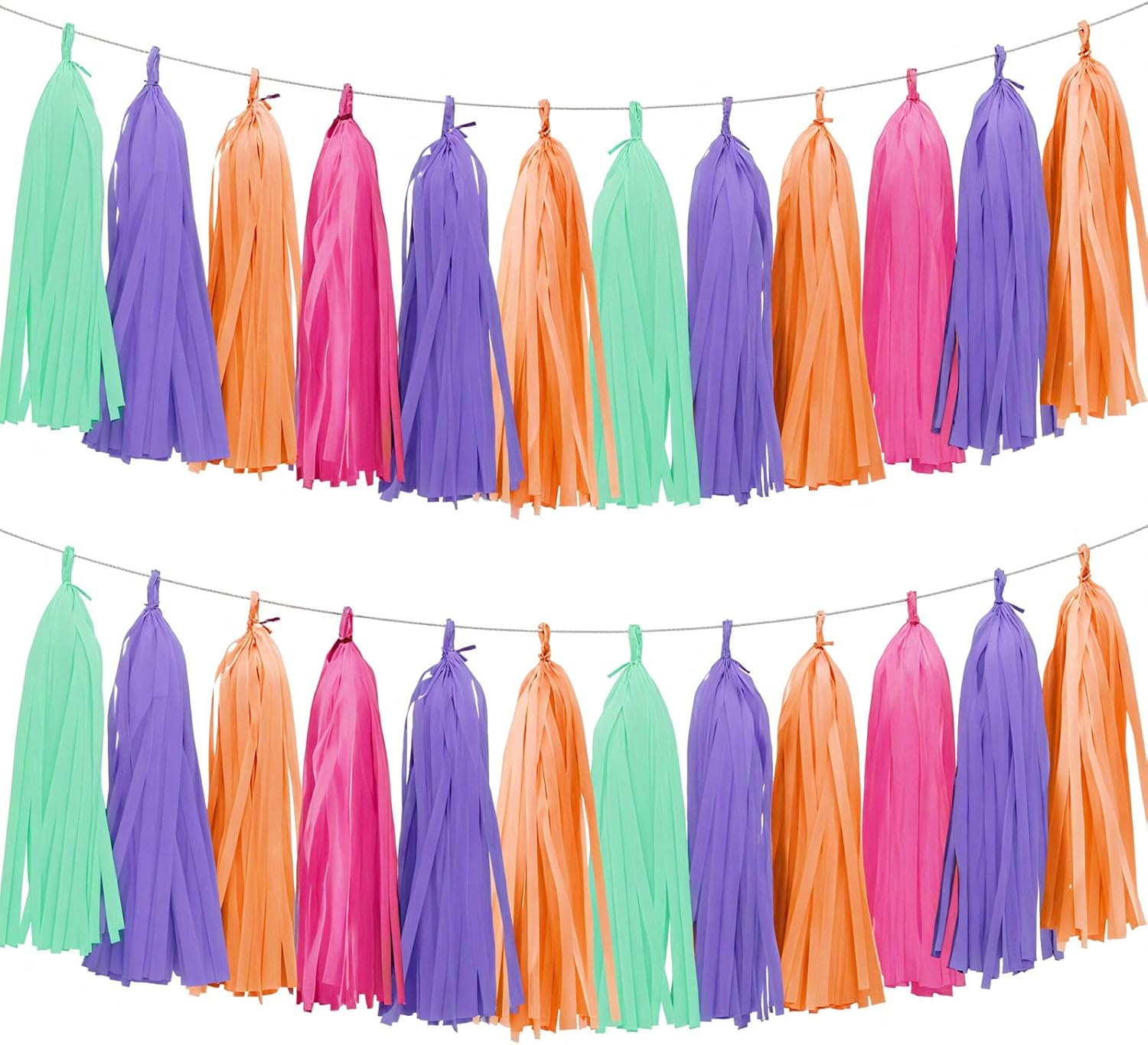 Tissue Paper Tassel Garland Banner, 20 Pack, Purple Blue Orange Pink, Pastel Party Decorations for Birthday, Baby Shower,Disco Them,Halloween