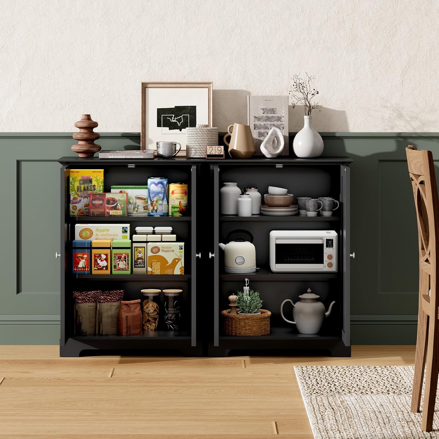 - 【Safe and Stable Construction】This floor cabinet features a reinforced base and well-built structure for enhanced stability. The built-in magnetic door closures ensure the doors stay securely closed, keeping your items safe and protected while adding convenience to daily use