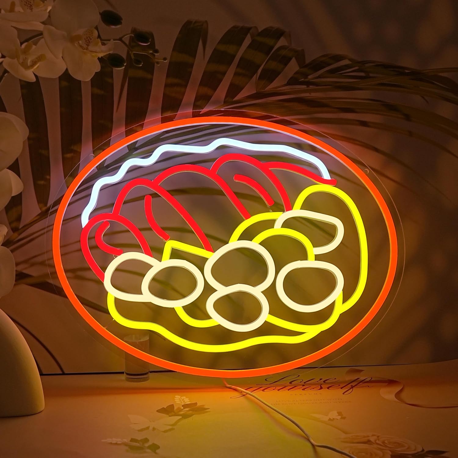 - Food neon sign: Vivid curry meat and vegetable neon light patterns, using yellow, orange, and red to echo the spiciness and deliciousness of curry, can arouse customers' interest and guide them into a world full of spices and flavors.