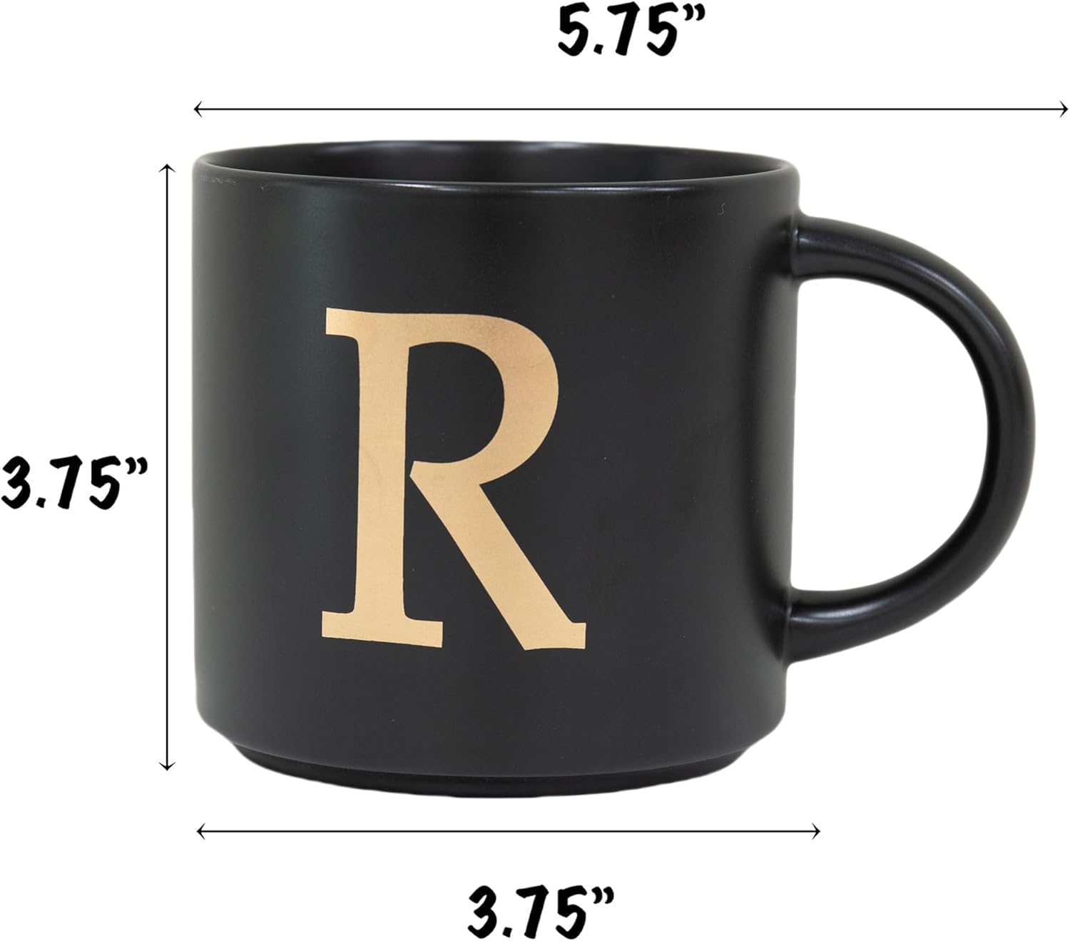 COLLECTIVE HOME - Monogram Ceramic Mugs, 15 oz Golden Initial Black Coffee Cups, Elegant Alphabet Tea Mugs, Elegant Personalized Mug with Gift Box, Unique Mug with Double Side Capital Lette (R)