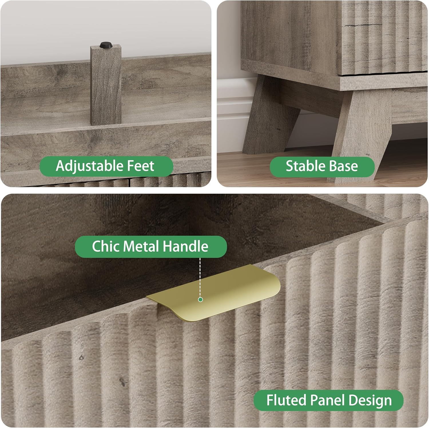 - ăModern Chic AppearanceăThe unique wave-like fluted panel enhances the texture and elegance of this bedroom dresser. The thick table top features natural wood grain that complements the black finish. The wide metal handle and splayed base legs add a modern touch, creating a personalized and distinctive appearance